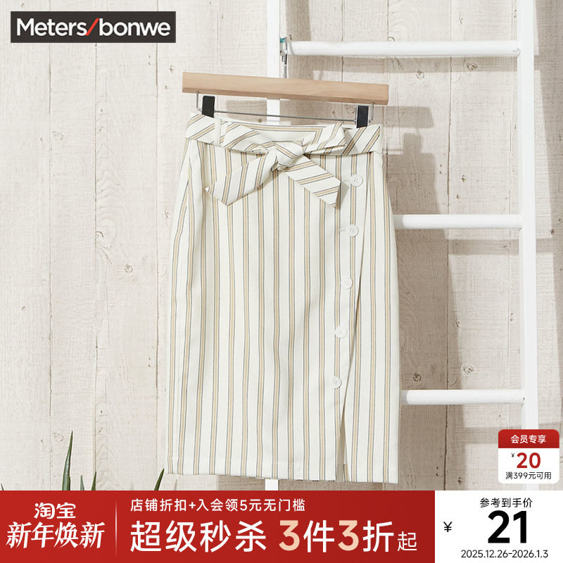 美特斯邦威半裙女夏轻薄条纹搭配时尚甜美学院风气质百搭半身短裙