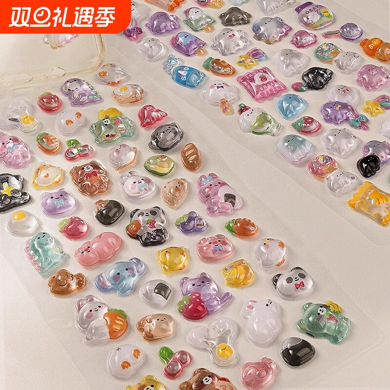 3D立体贴纸浮雕女孩儿童卡通动物宝石贴画钻石手机壳装饰水晶滴胶防水手帐颜值高透明贴贴纸水杯手机后壳海洋