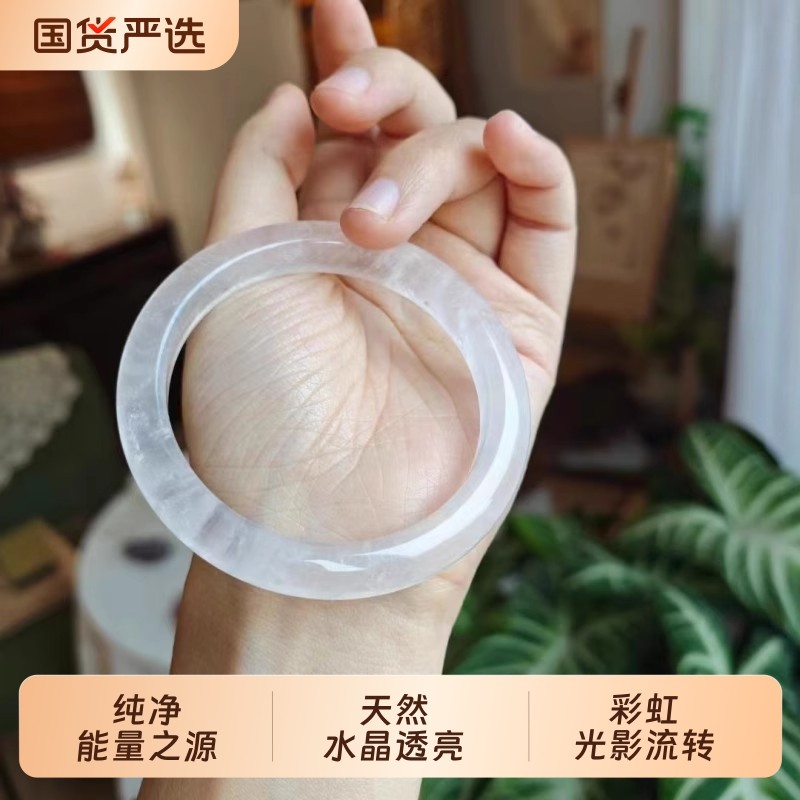 通透天然白水晶手镯女正品高冰水晶镯子雪花体送女友闺蜜礼物女镯
