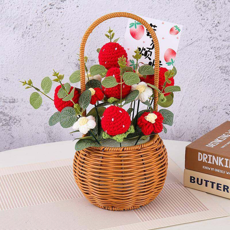 成品创意针织毛线水果花束手工编织手提花篮送领导老师朋友