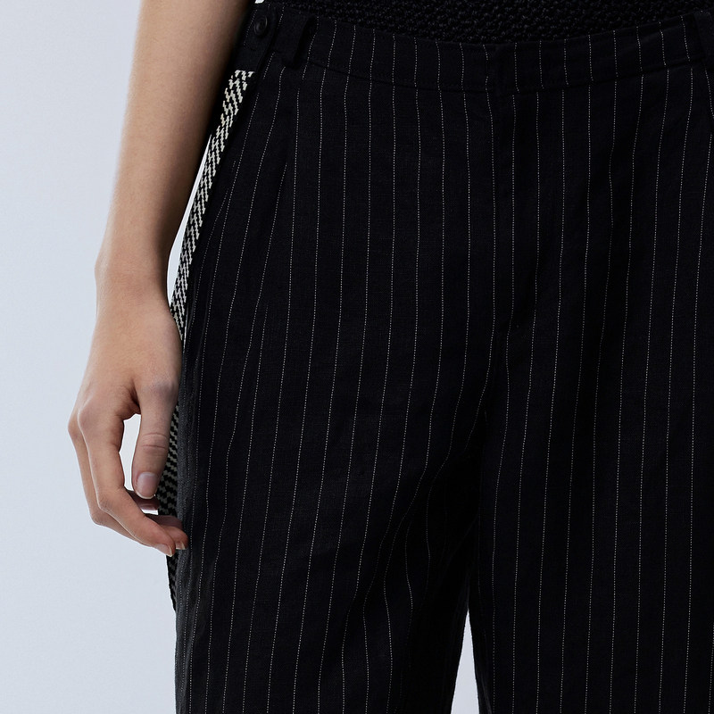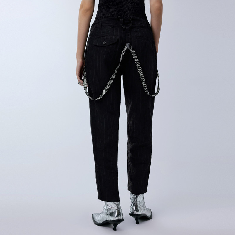 JNBY/江南布衣折扣春夏直筒裤背带水洗宽松通勤简约九分裤亚麻女