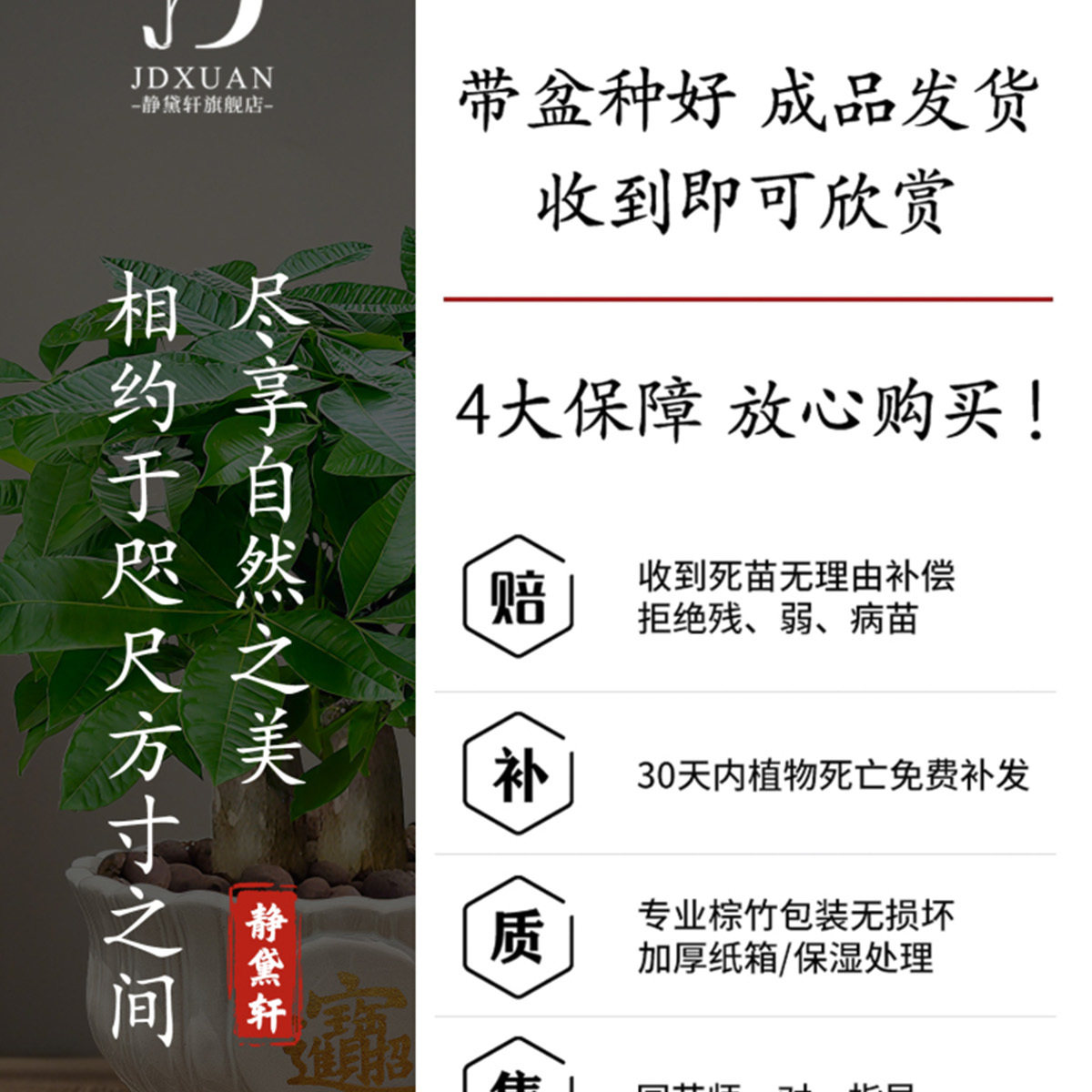 发财树小盆栽客厅盆景办公室内桌面旺宅绿植开业送礼四季常青好养
