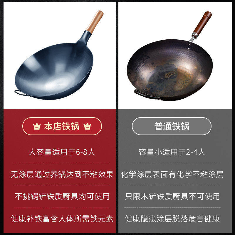 铁锅官方旗舰炒菜锅老式炒锅铁锅家用不粘锅无涂层燃气灶适用