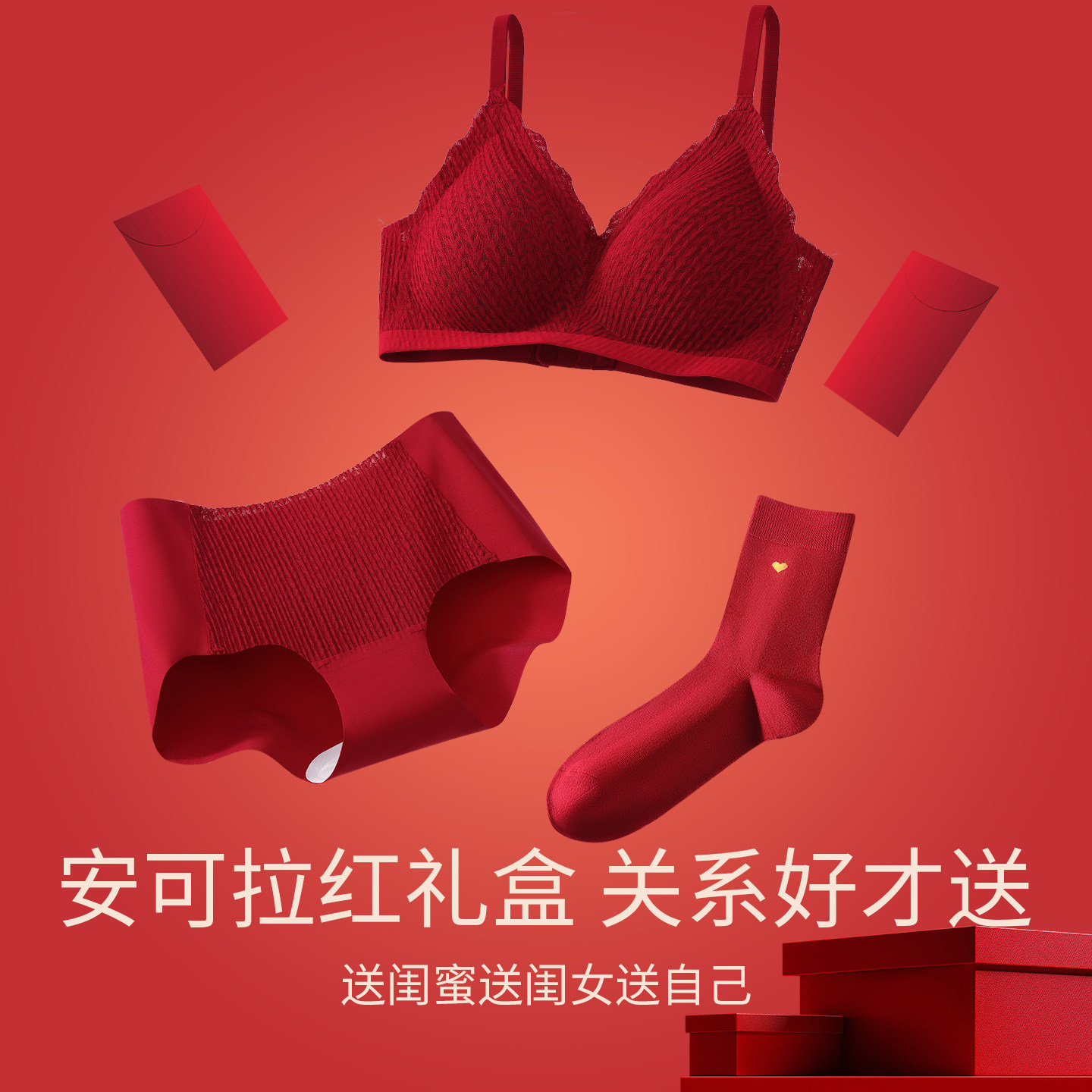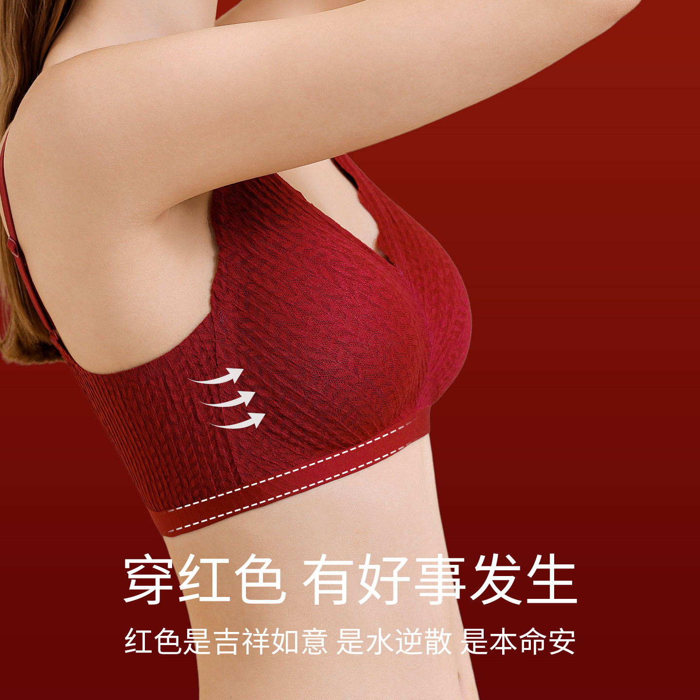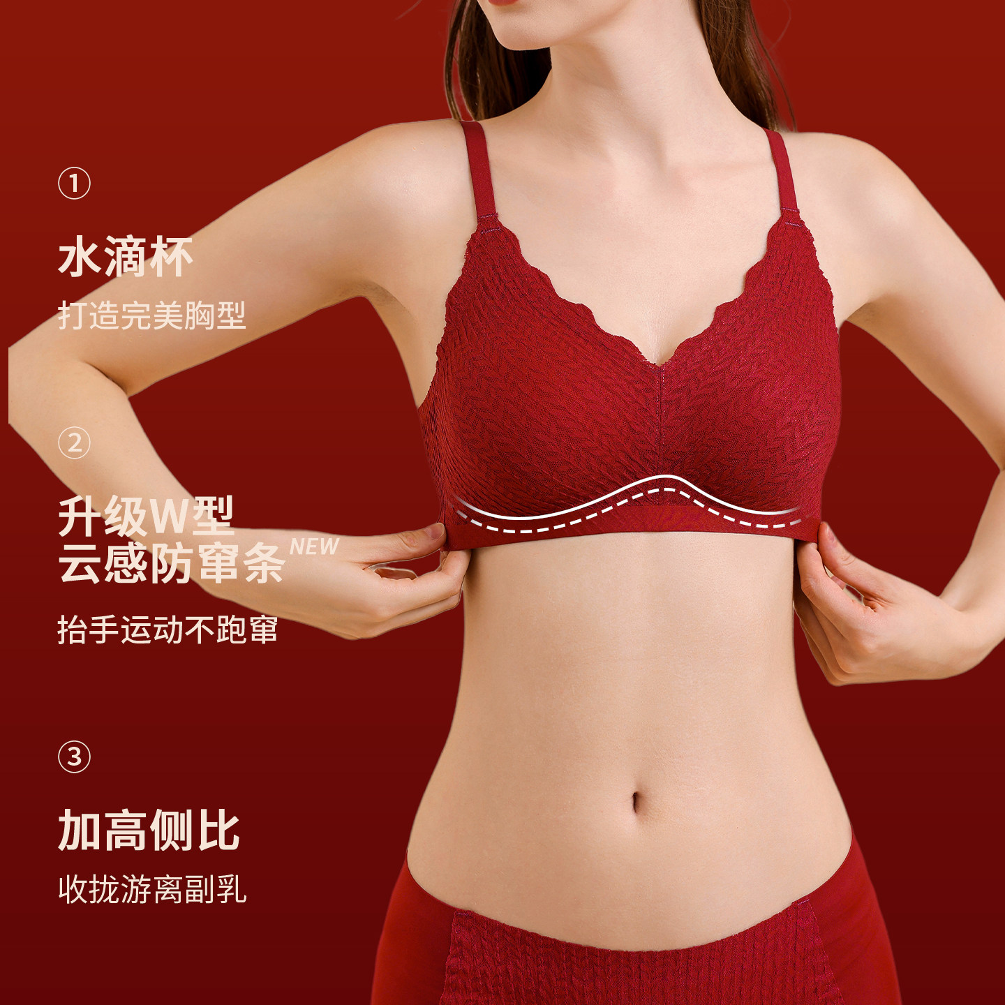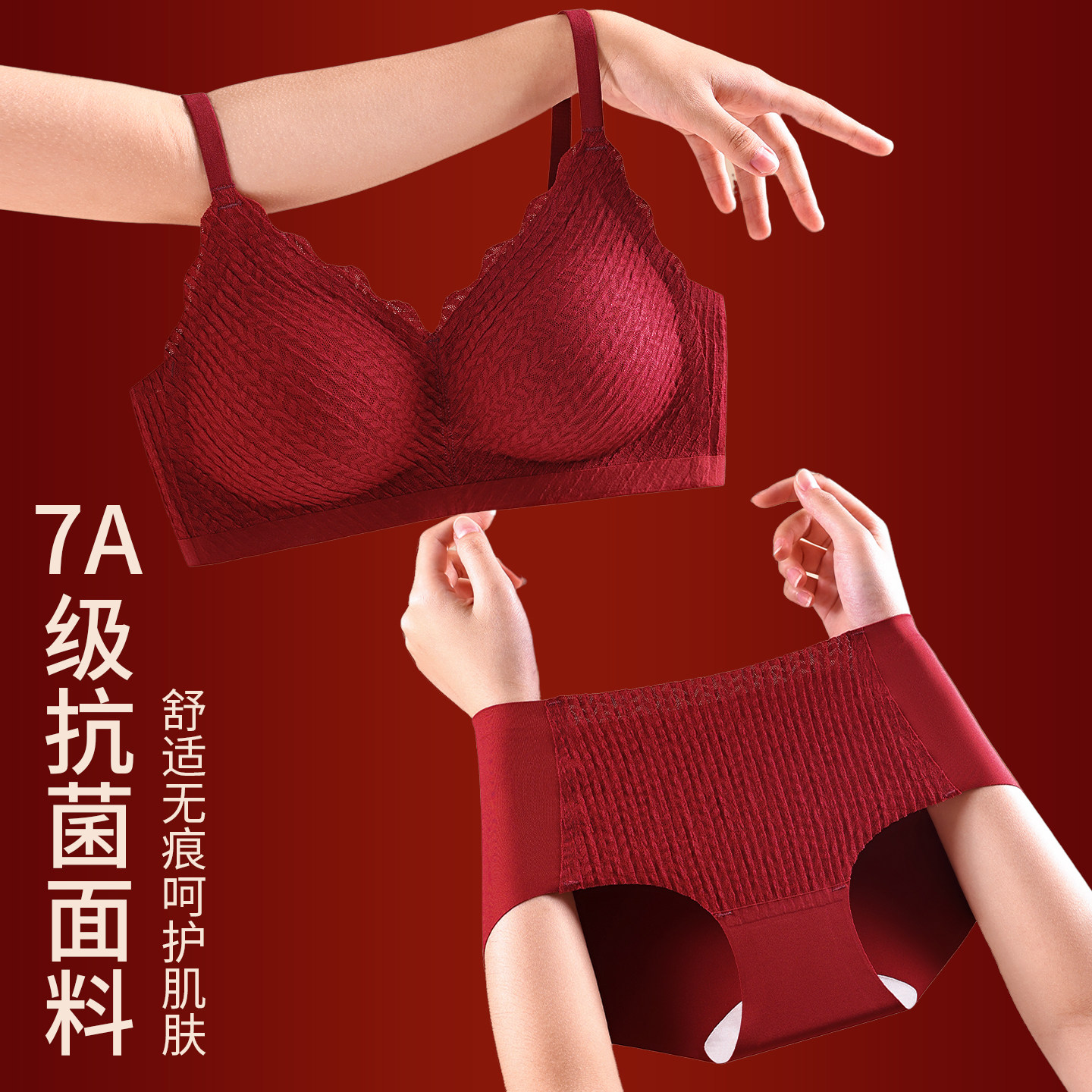 本命年内衣套装红色结婚新娘女小胸聚拢显大文胸内裤袜子2025新款