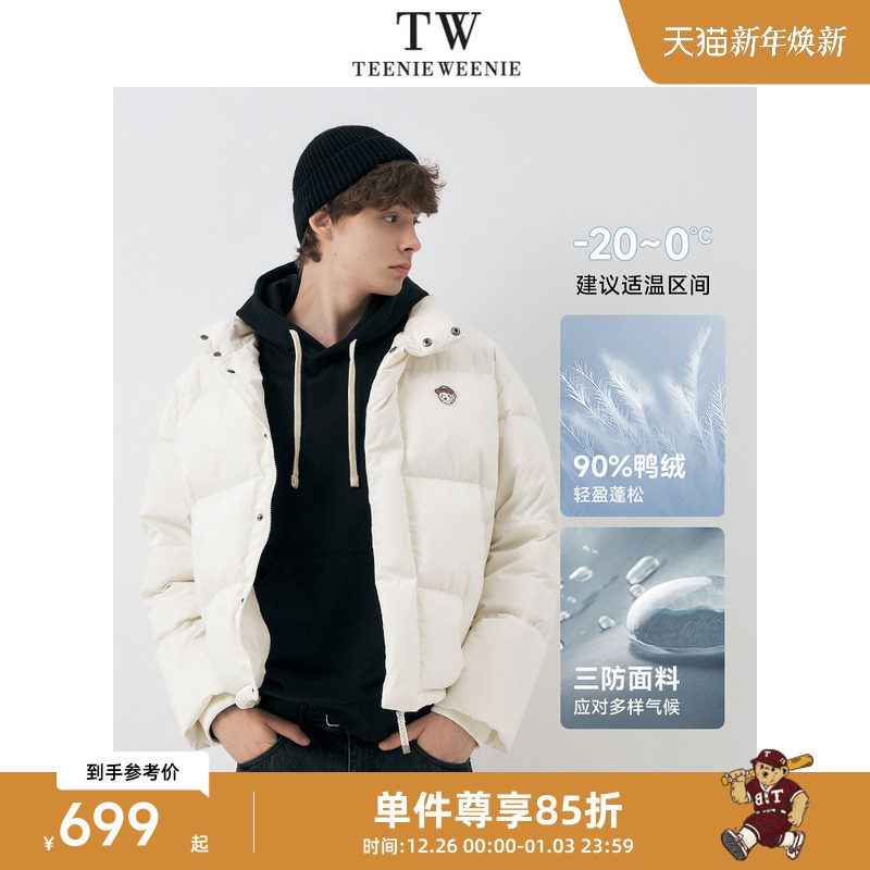 Teenie Weenie小熊男装三防轻薄休闲格纹肌理外套保暖羽绒服男款