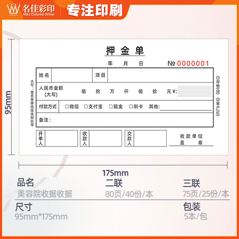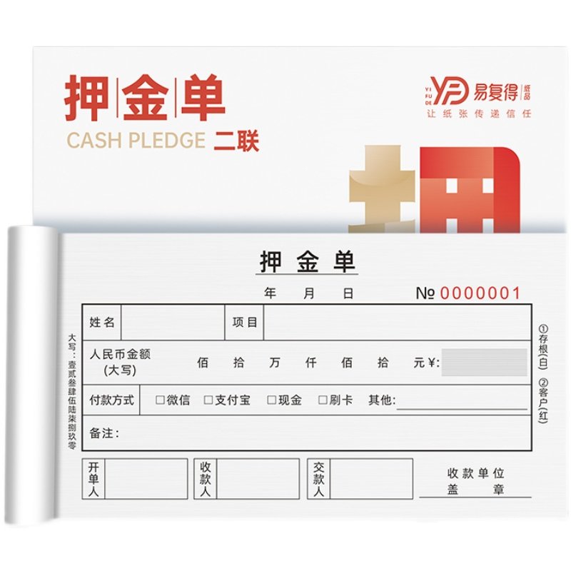押金单水桶空桶定制酒店订餐婚纱礼服车租赁抵押条物品寄存提取单