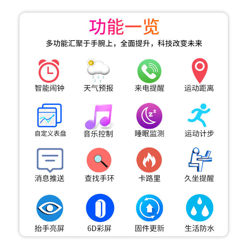 新生代智能手表运动睡眠男女多功能计步适用安卓苹果情侣电子蓝牙手表