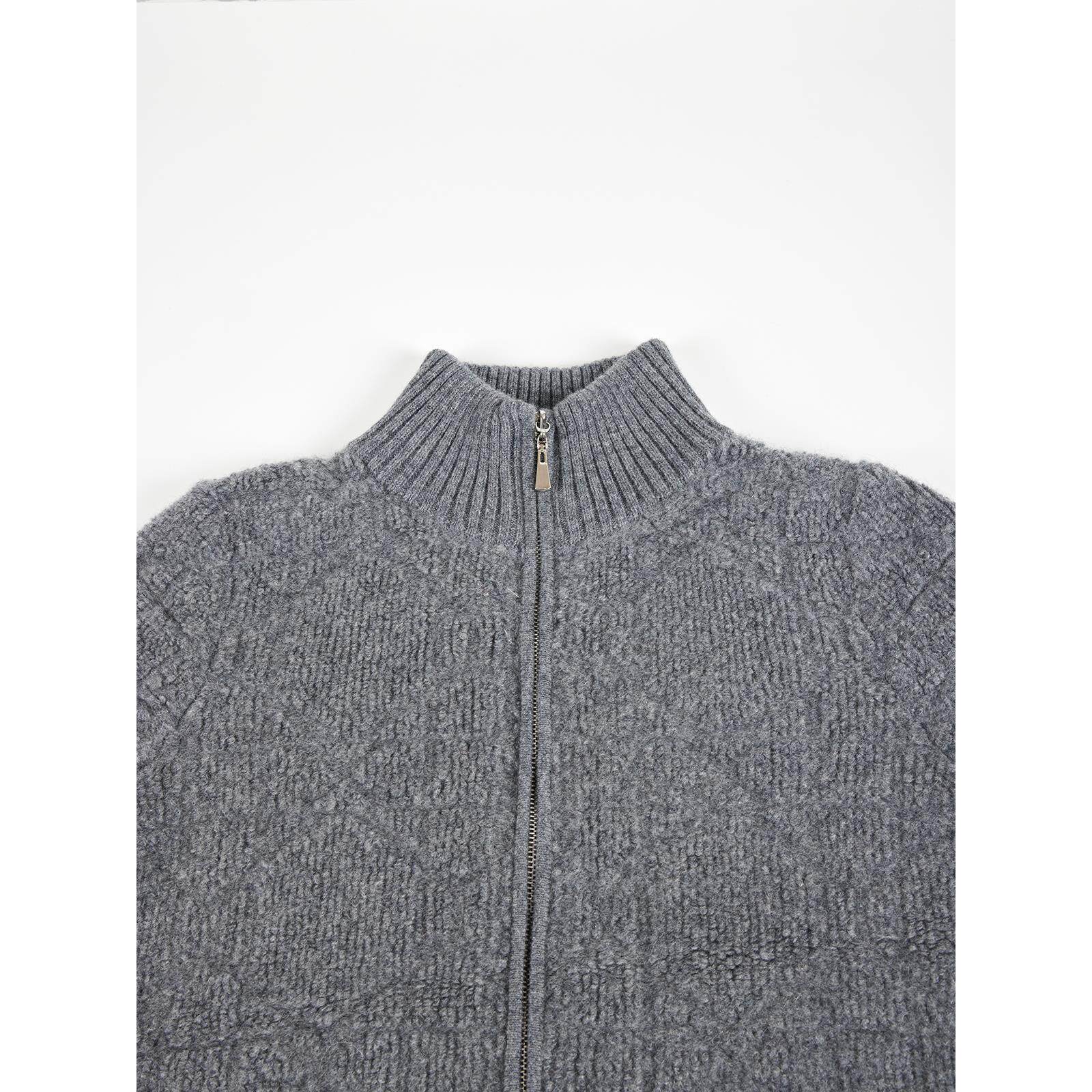 THEEASE舒适派D家经典菱形格纯山羊绒立领拉链针织开衫加厚女毛衣
