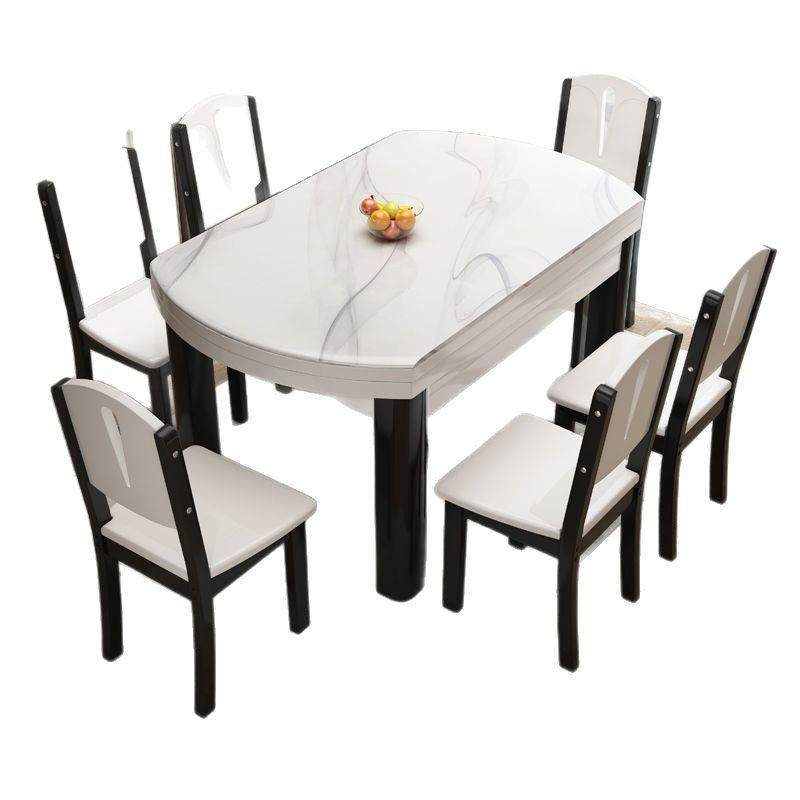 大理石餐桌椅组合实木现代简约家用小户型餐桌吃饭桌子可折叠方圆