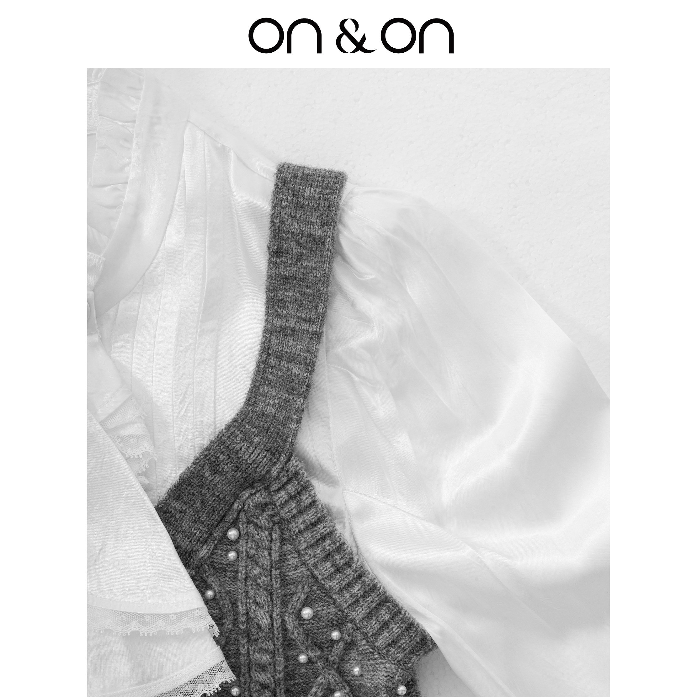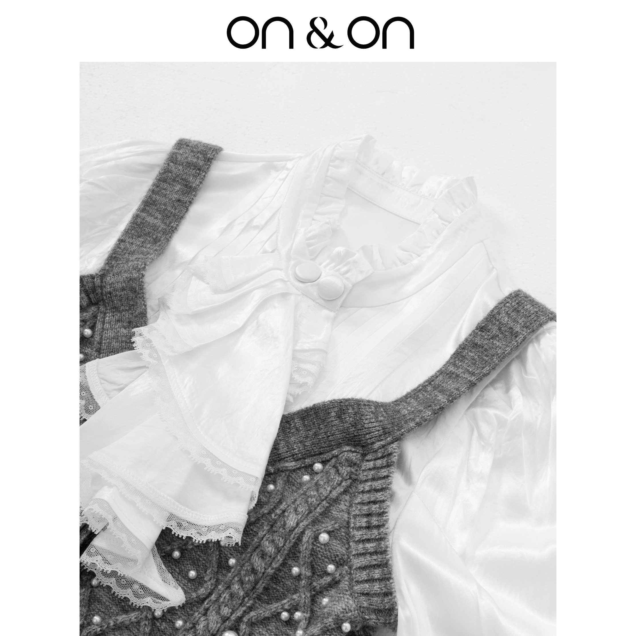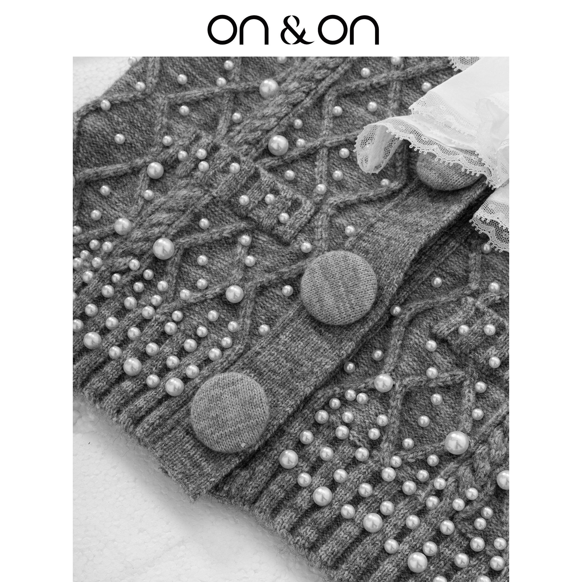 ON&ON/安乃安2026春季新款法式复古宫廷风手工钉珠假两件针织衫