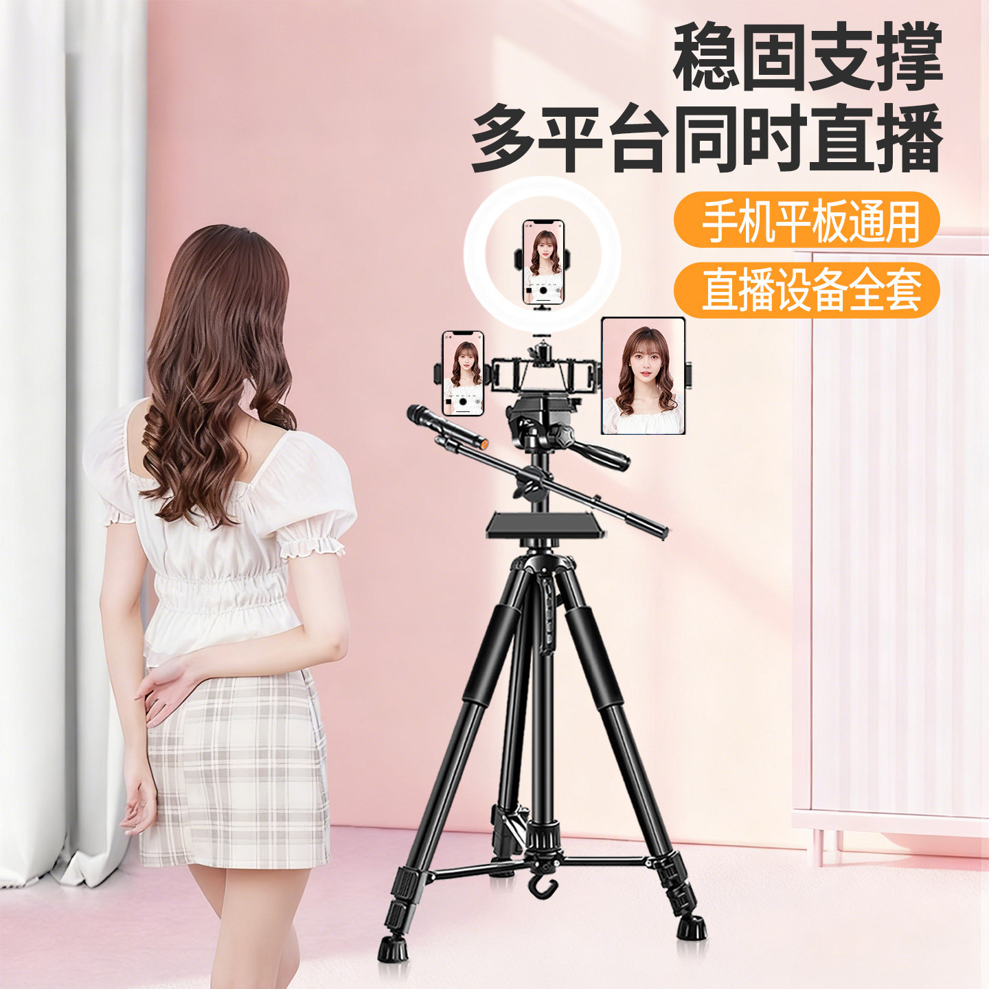 手机支架落地式带托盘2026新款拍摄直播专用三脚架便携多功能多机位可升降双机位带话筒杆户外防抖360度旋转