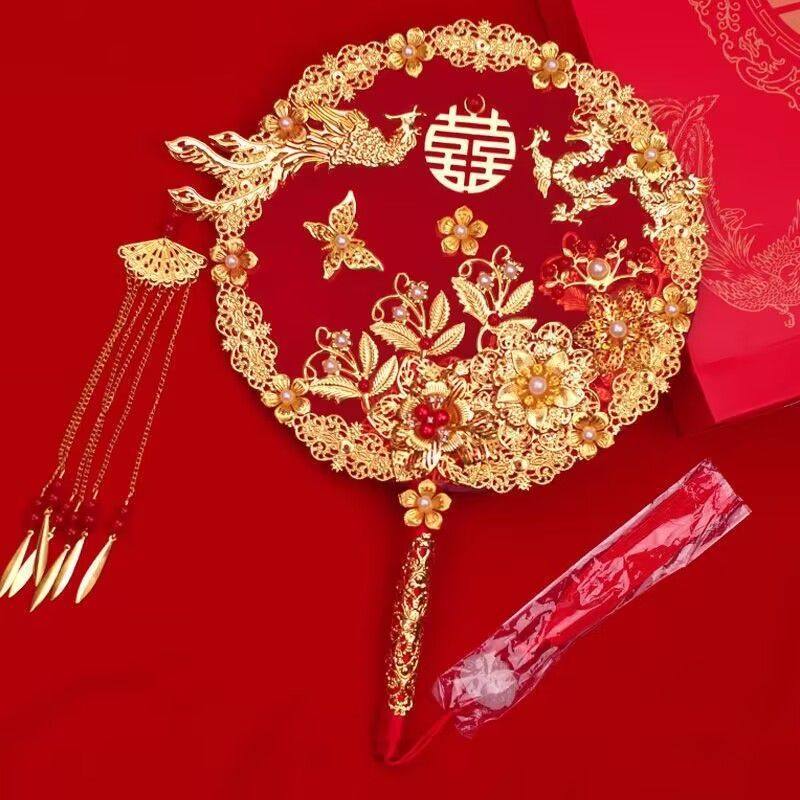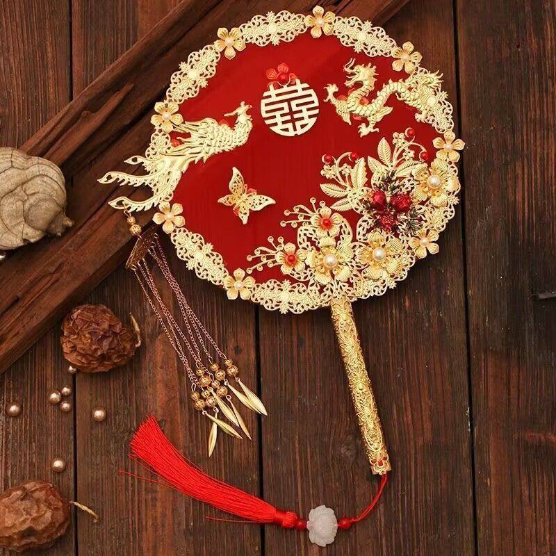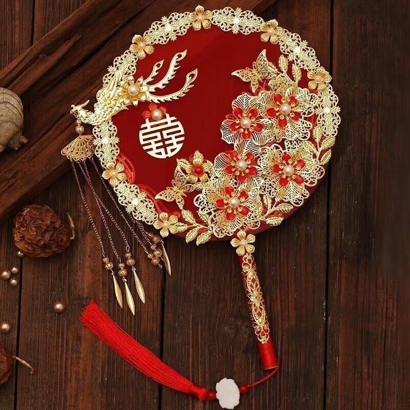 秀禾服团扇新娘结婚喜扇成品秀禾团扇中式古风新娘出嫁手捧花扇子