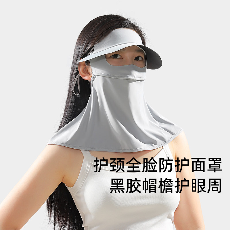防晒面罩女夏户外遮阳全脸防紫外线护颈黑胶大檐一体口罩脸基尼A