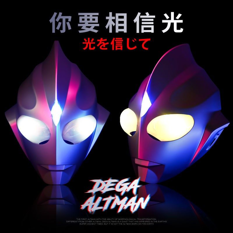 圣诞节迪迦头套头盔奥特超人儿童成人触摸发光面具曼全脸男孩玩具