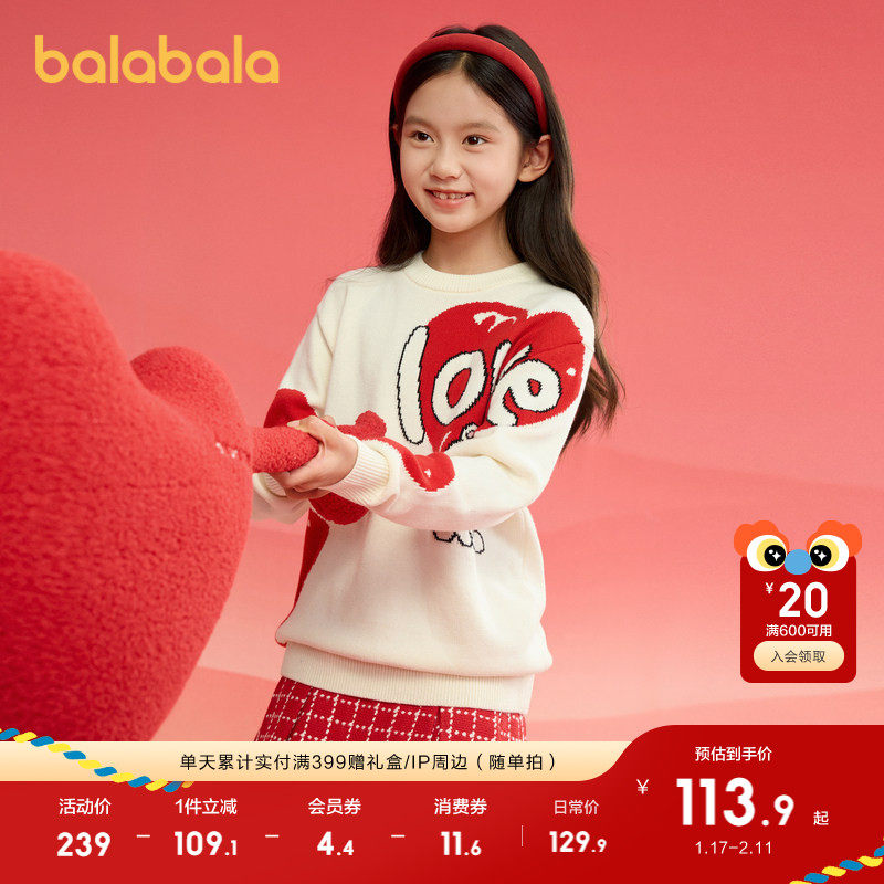 巴拉巴拉童装儿童毛衣男童女童春秋2025新款亲子套头针红色拜年服