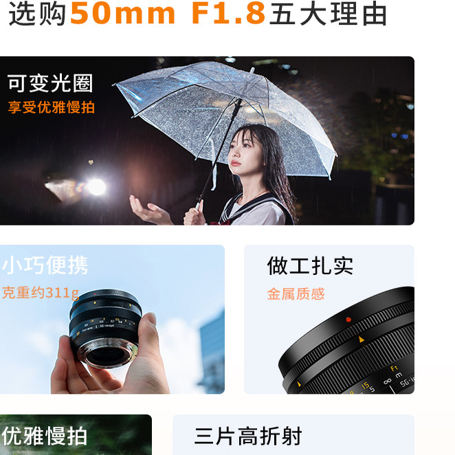 深光50mm F1.8全画幅手动对焦镜头适用于索尼E富士X佳能RF尼康Z口
