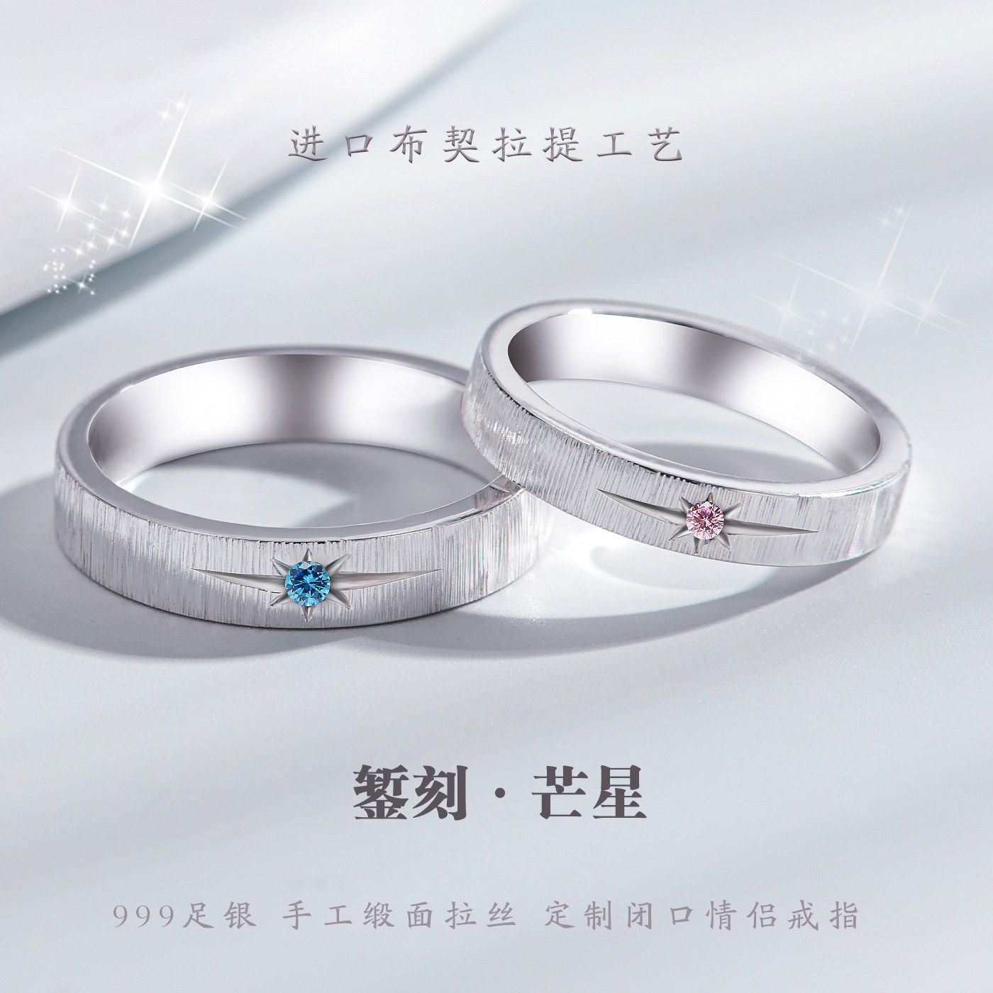 足银S999碎冰冰闭口戒指女轻奢高级感爆闪纯银指环情侣对戒尾戒
