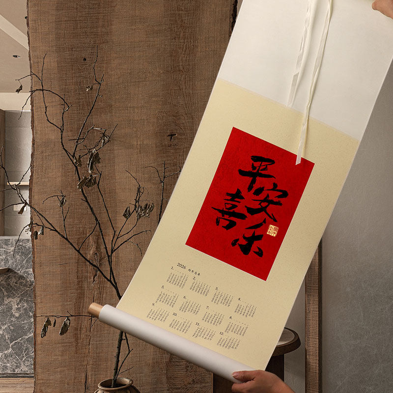 2026年马年日历新品中国风蜡染万年红洒金居家装饰创意宣纸挂历