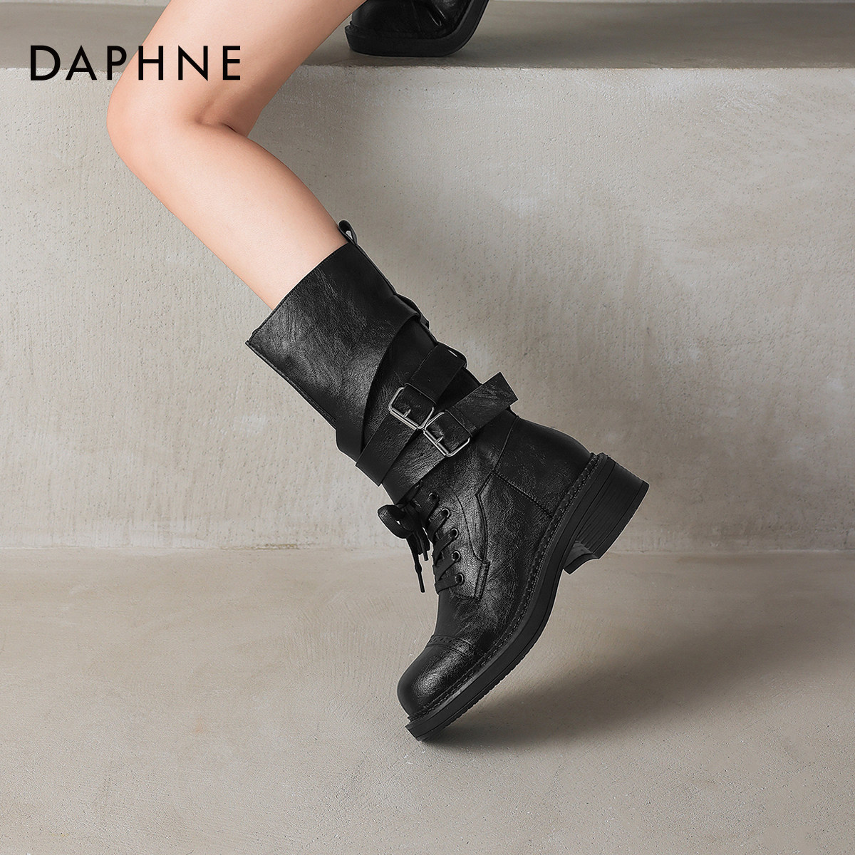 达芙妮马丁靴女款2026新款美拉德西部短靴废土风靴子中筒机车靴女