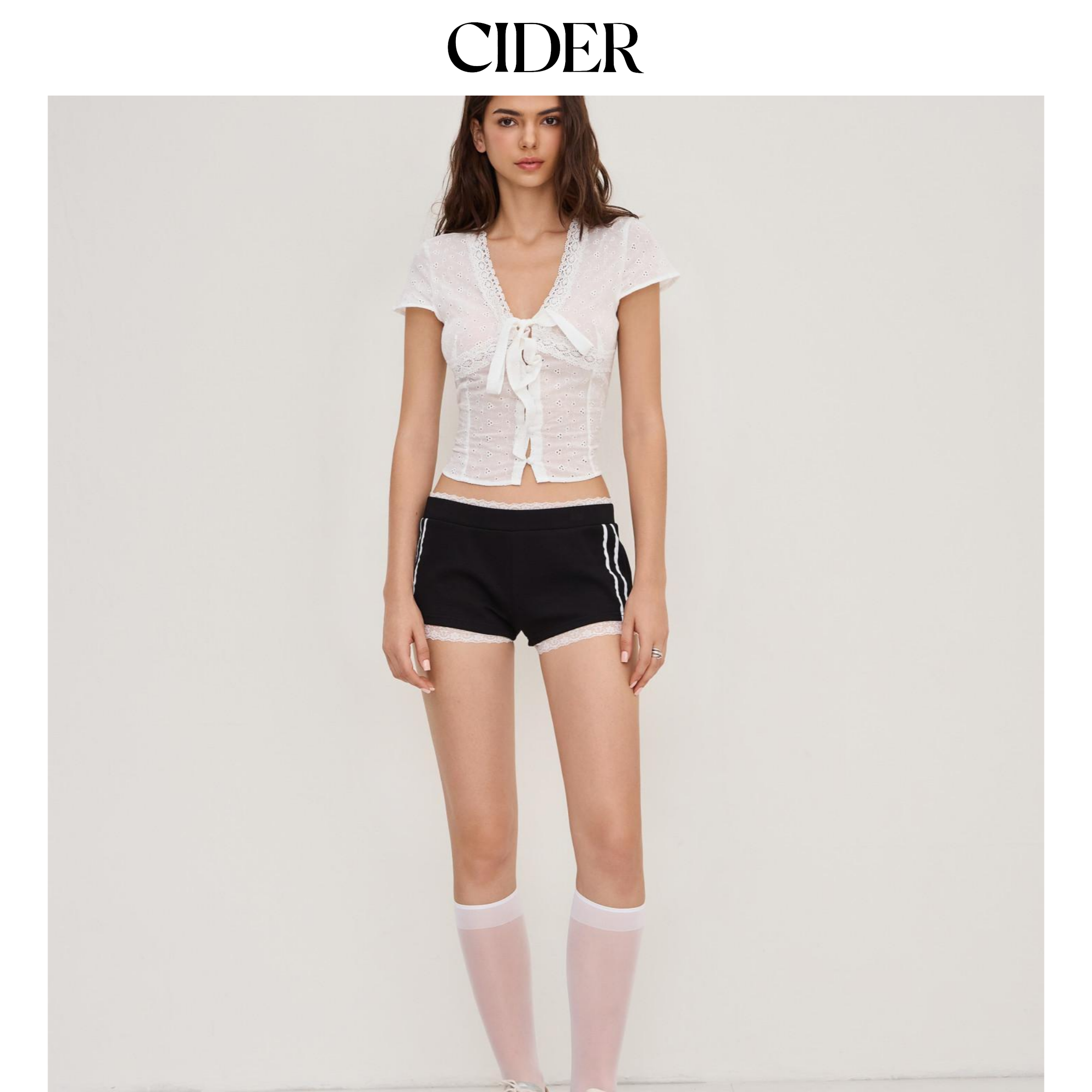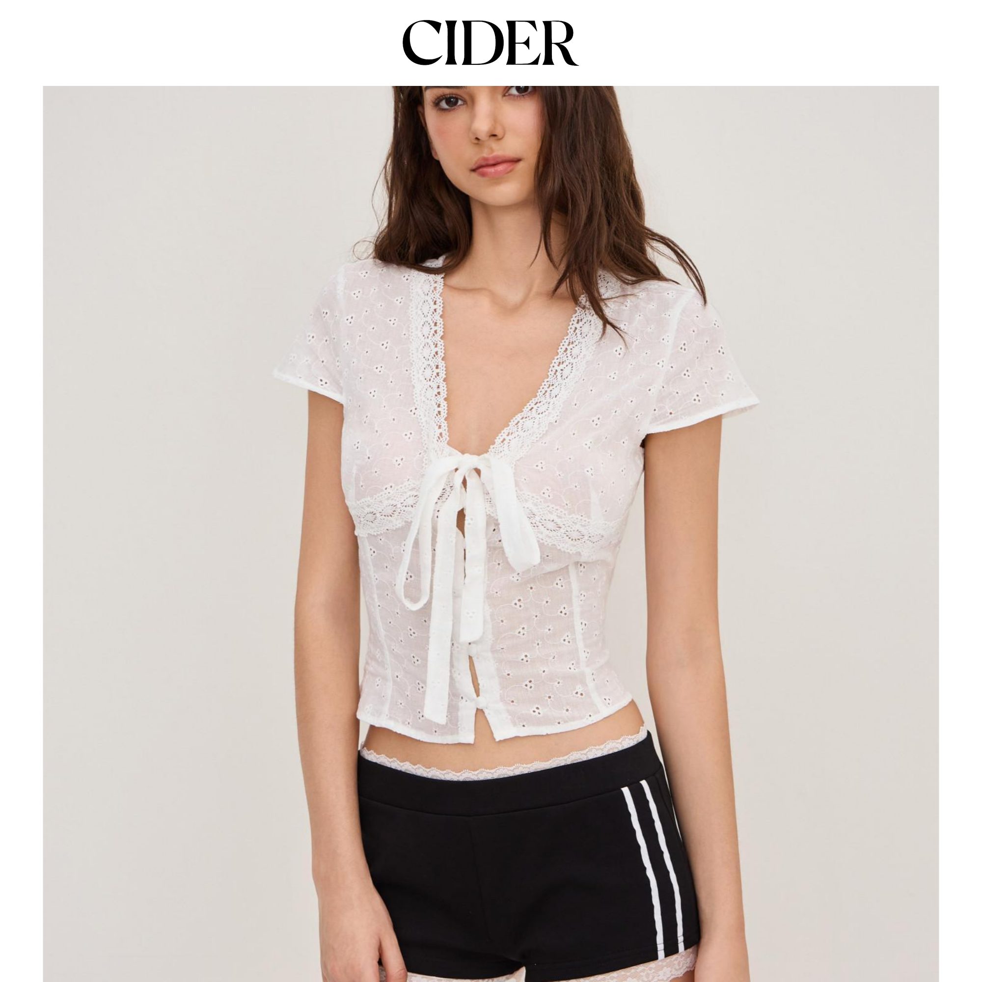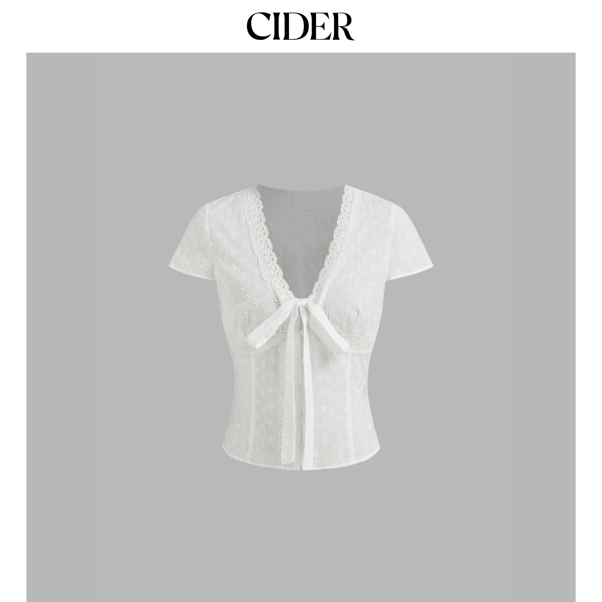 【明星同款】CIDER棉刺绣蝴蝶结法式蕾丝衬衫114326439