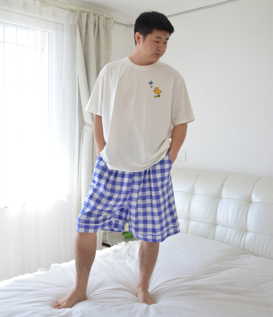 情侣睡衣男女加肥大码针织纯棉胖MM圆领短袖短裤卡通家居服200斤