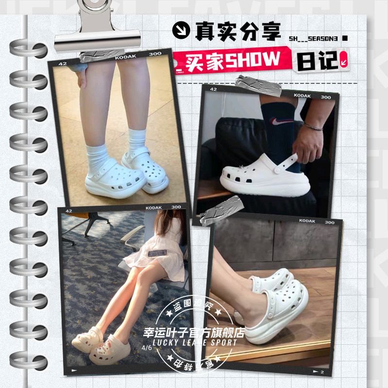 crocs卡骆驰洞洞鞋女鞋厚底泡芙凉鞋新款白色包头户外拖鞋沙滩鞋