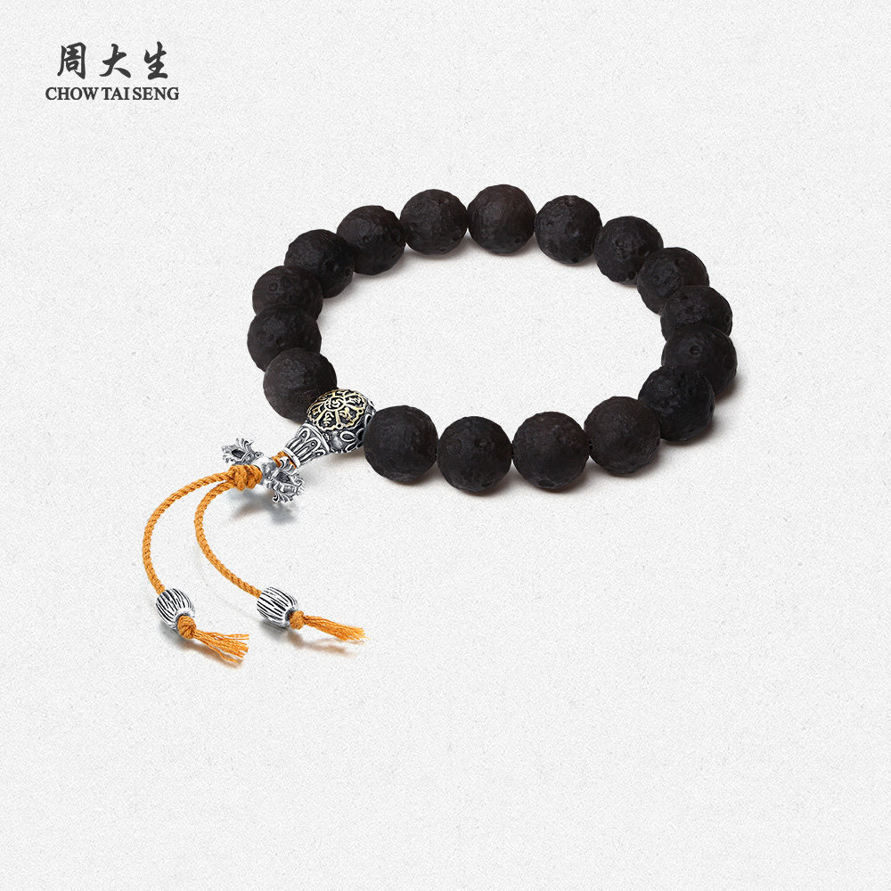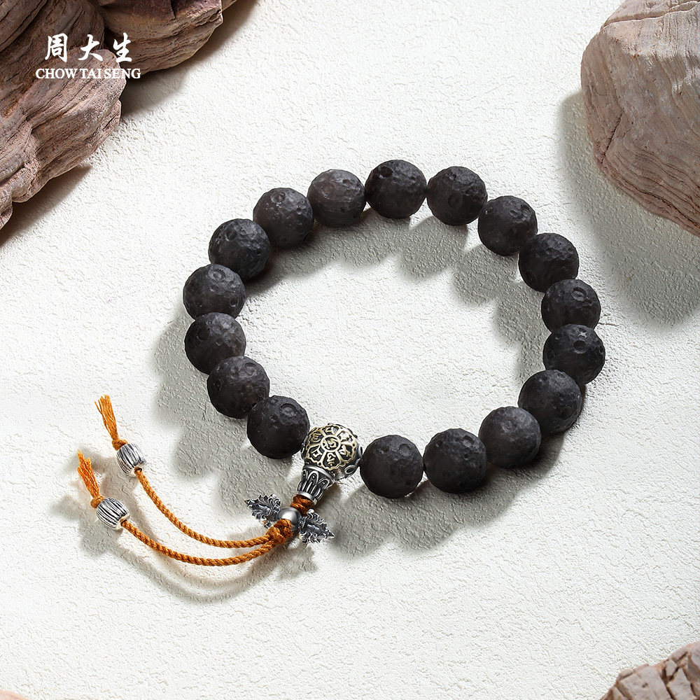 周大生银饰S925黑曜石手串足银复古国潮生日礼物送男友简约男手链