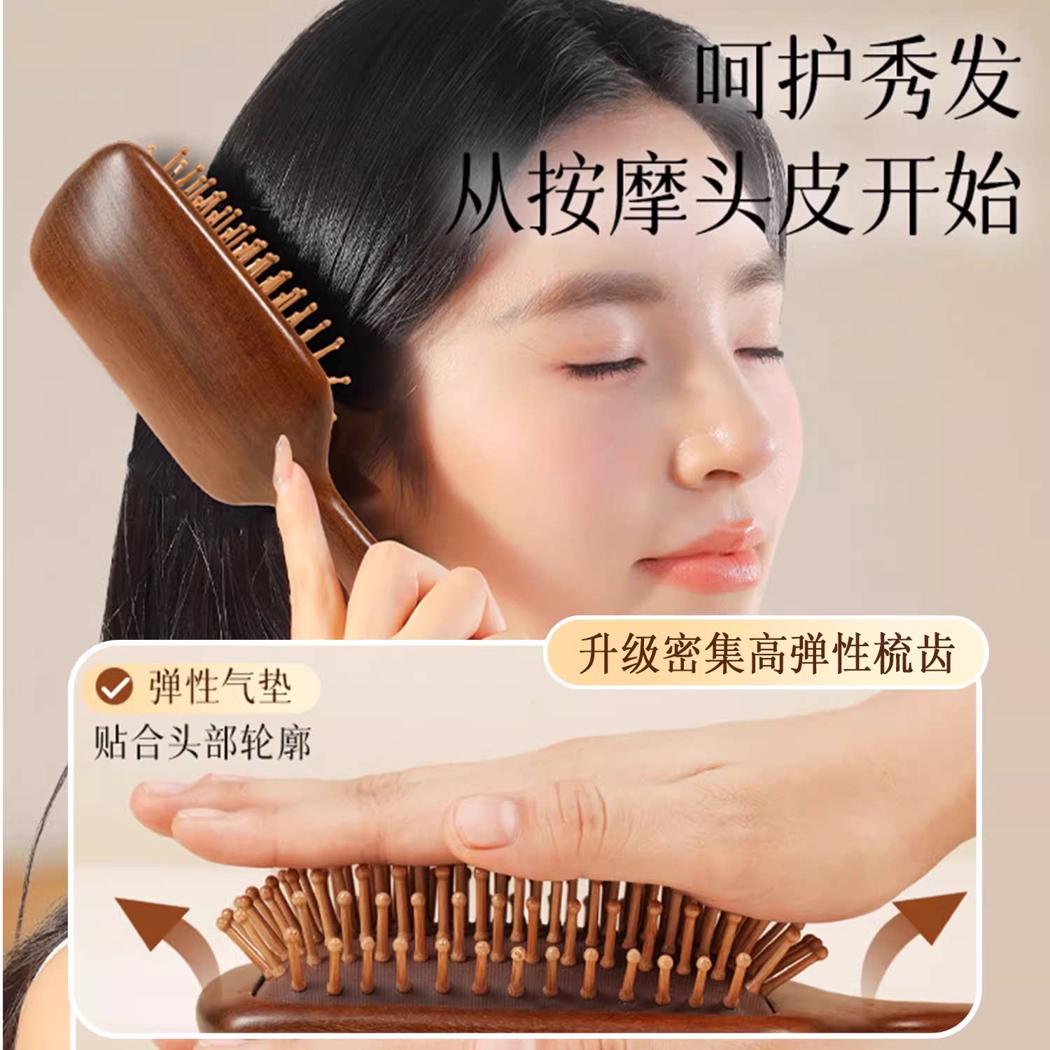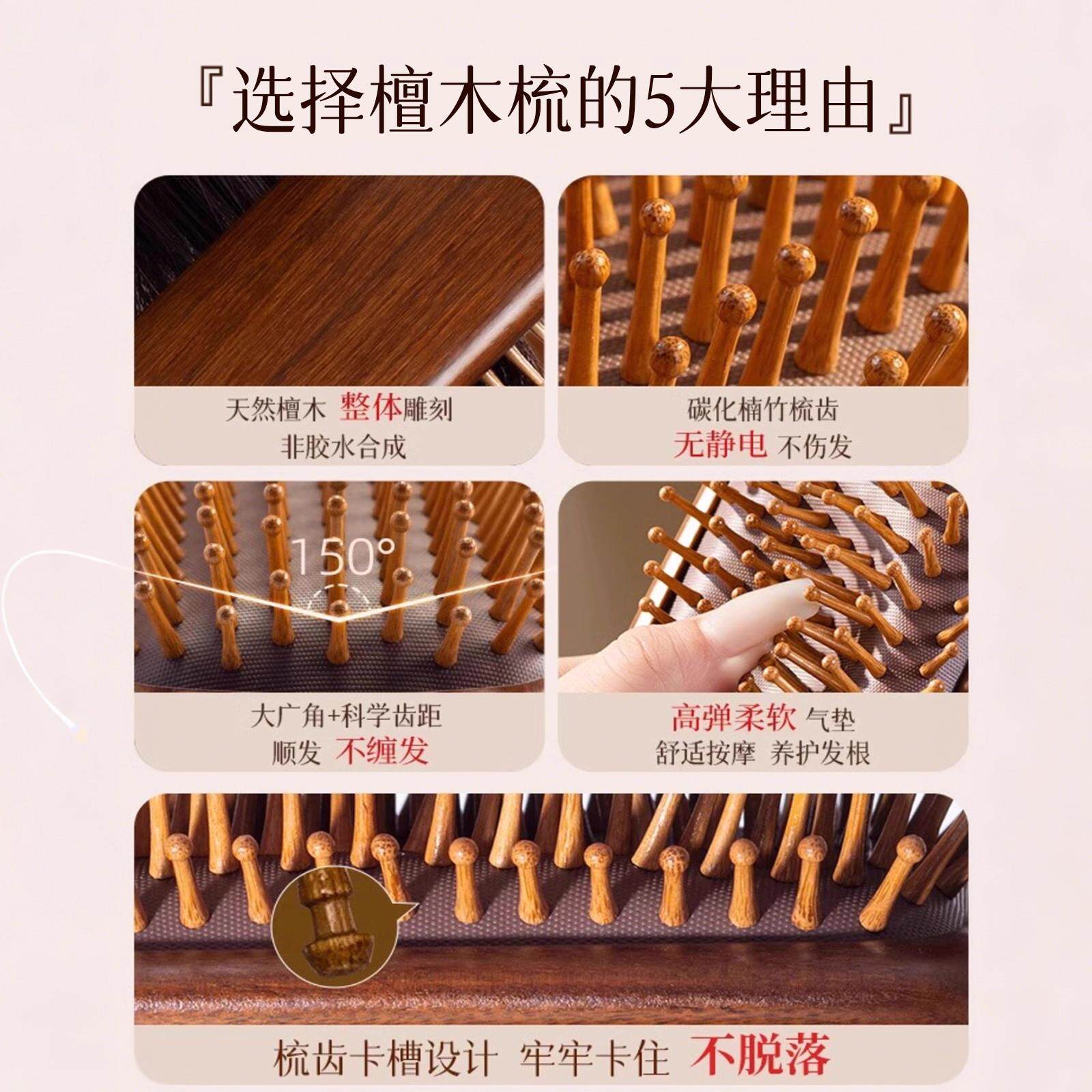 金丝檀木气垫梳顺发女士家用头部头皮经络按摩梳毛囊疏通气囊梳子