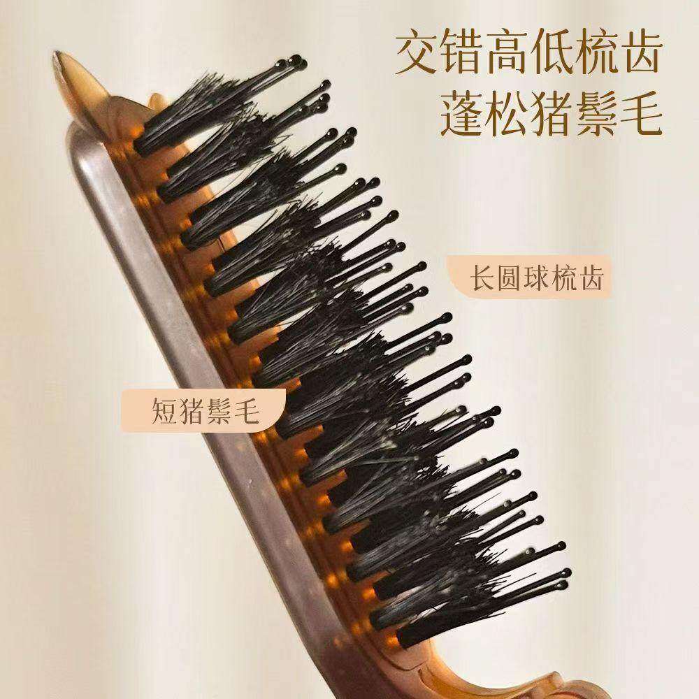 猪鬃毛折叠梳子便携式头皮按摩梳外出旅行蓬松梳头经络小巧排骨