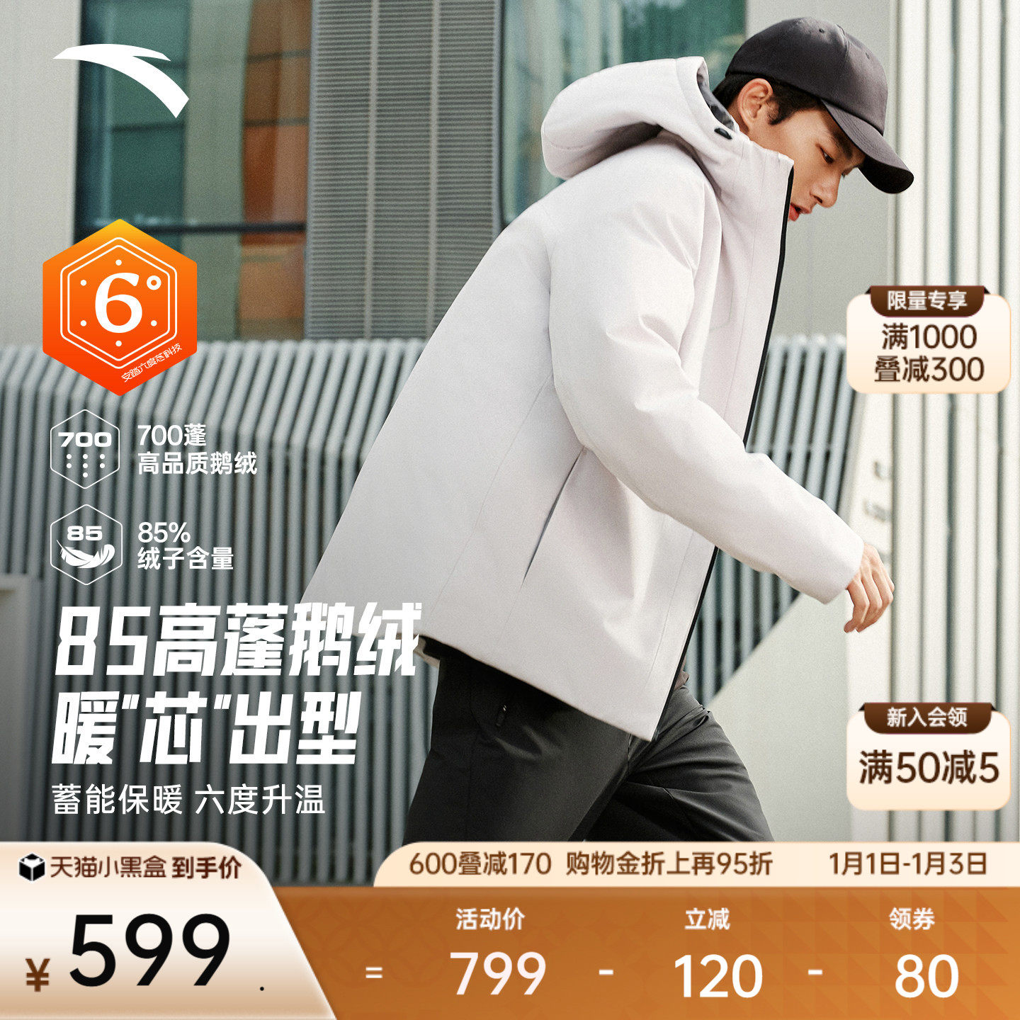 【樊振东同款】安踏面包羽绒丨六度芯鹅绒羽绒服男士保暖棉服外套