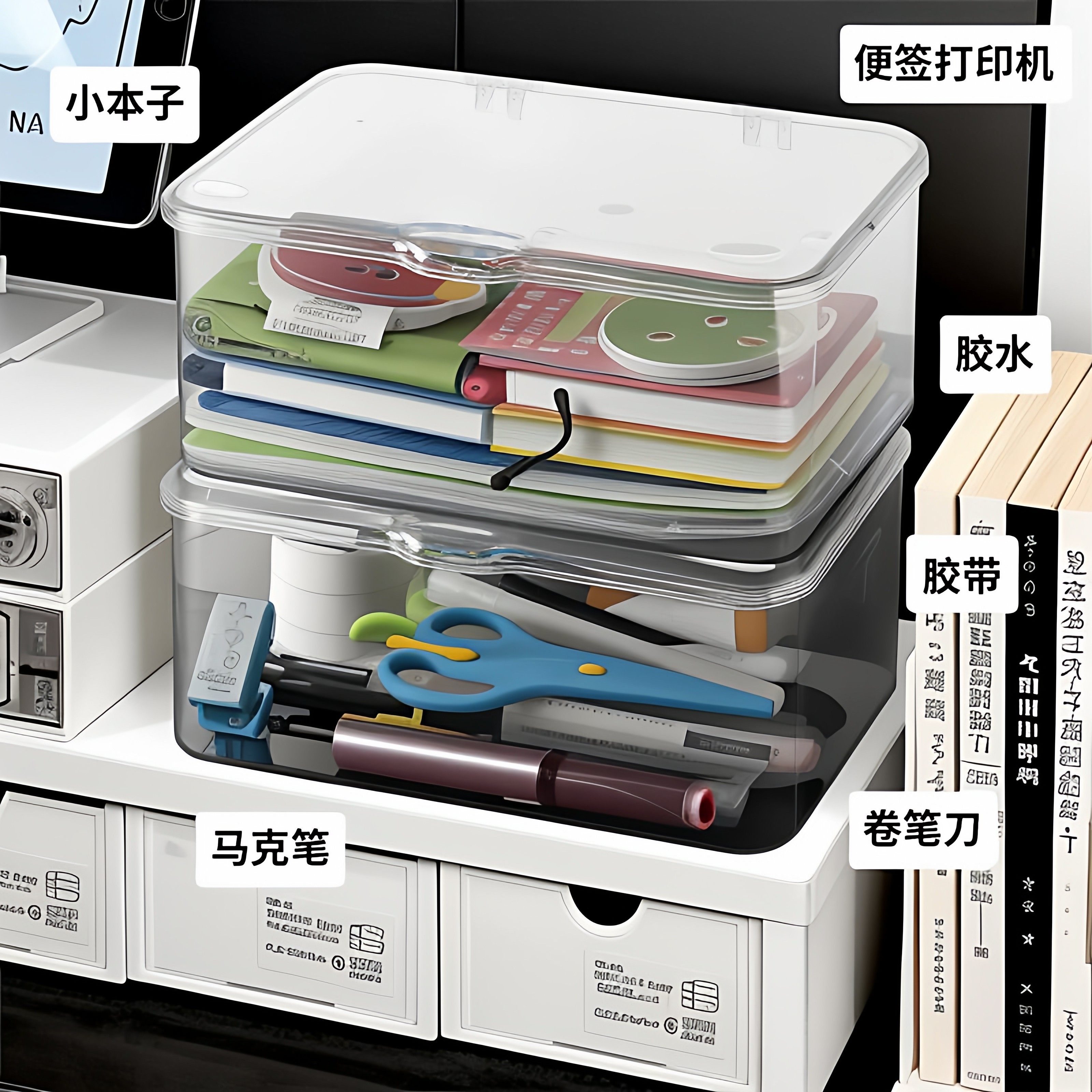 亚克力桌面收纳盒透明宿舍文具杂物书本置物架大容量办公室文件筐