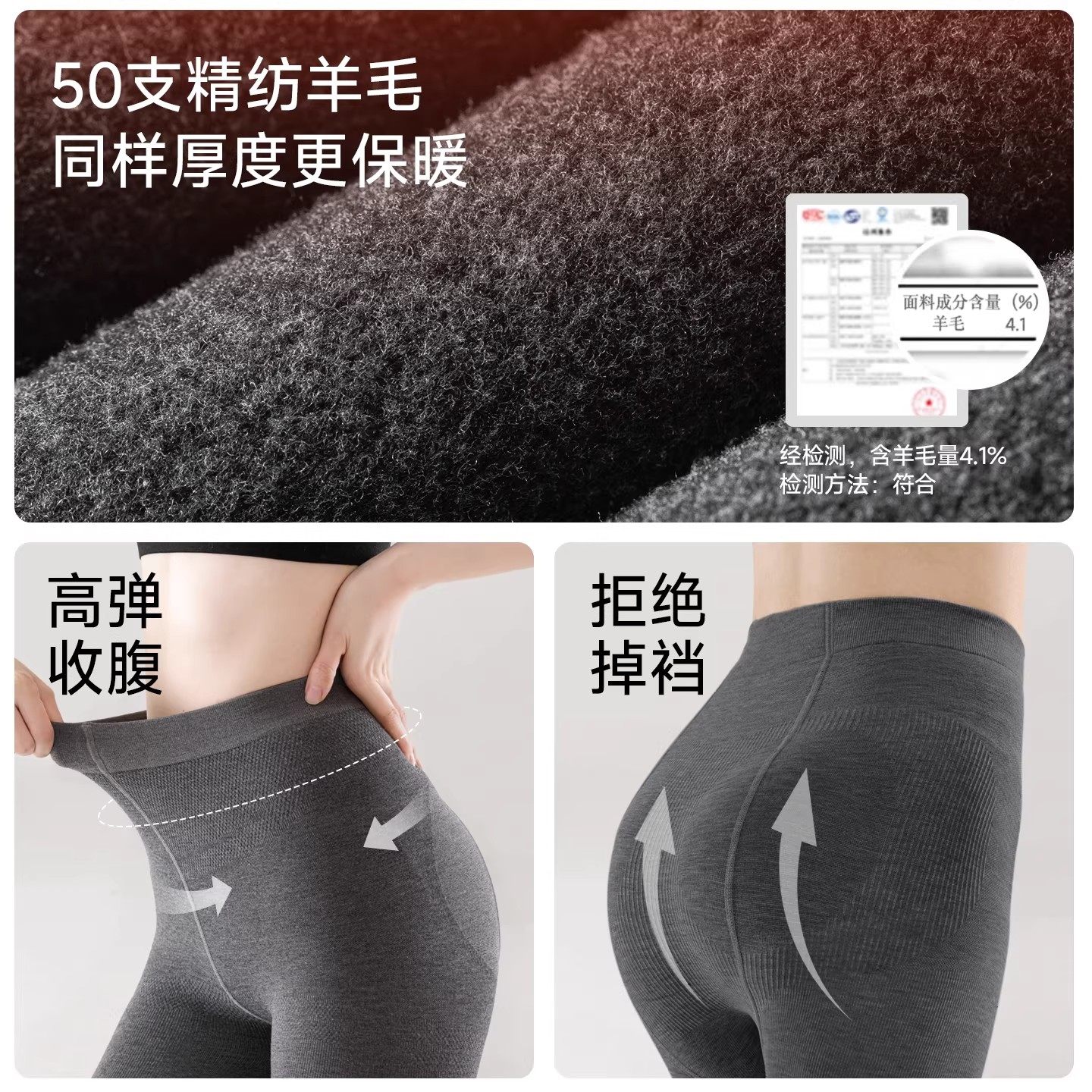 菇娘家澳洲绵羊毛灰色打底裤女冬外穿加厚保暖深灰压力瘦腿连裤袜