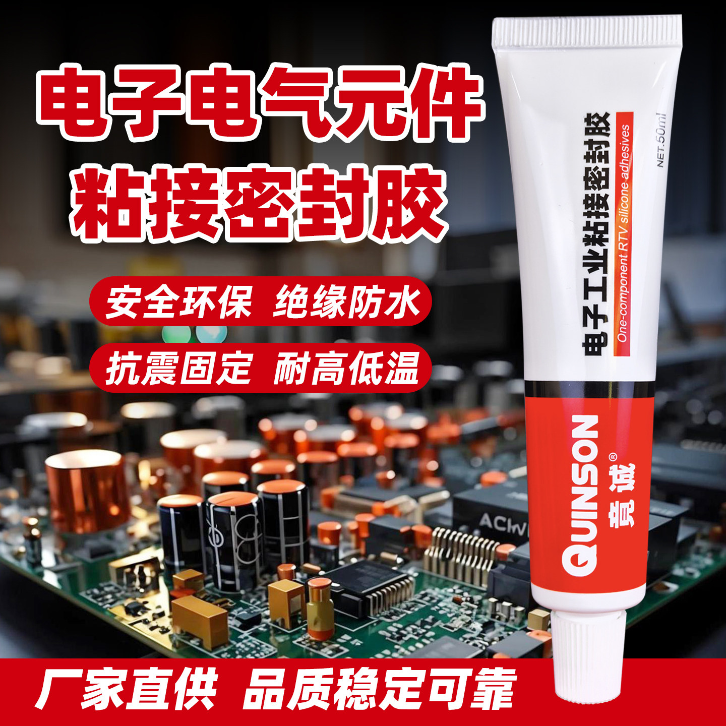 电子元件固定胶绝缘线路板电容接插件防震动快干有机硅电机密封胶
