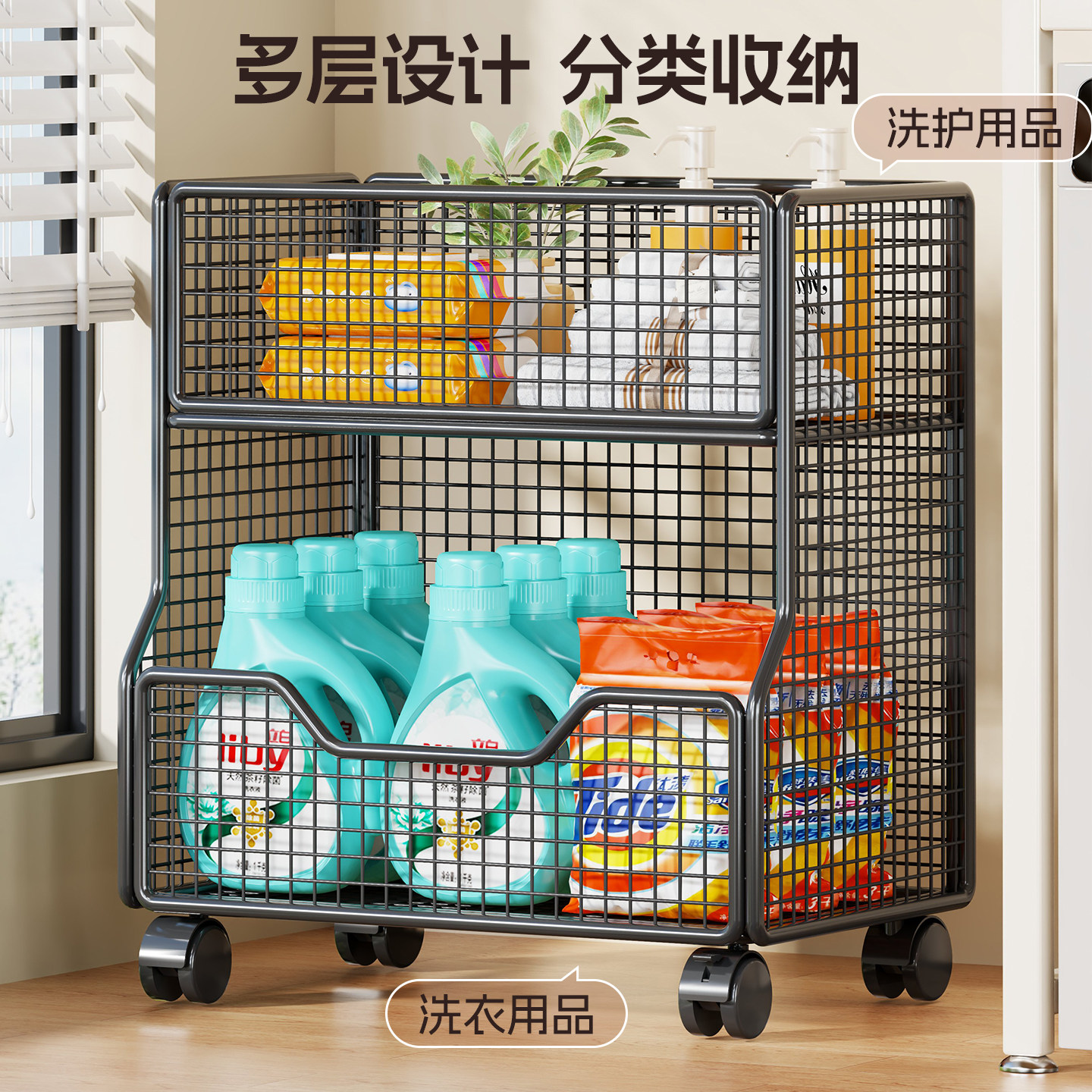 卫生间洗衣液收纳架阳台夹缝置物架浴室洗漱台厕所多层移动小推车