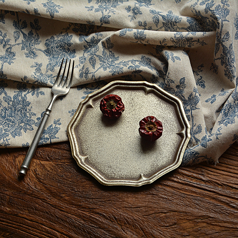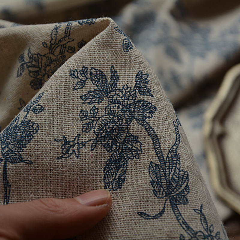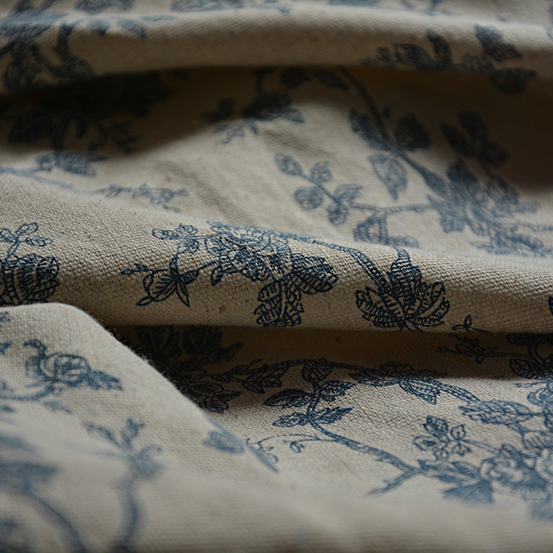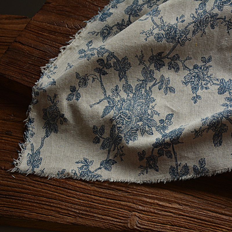 复古蓝花布玫瑰印花布中国风拍照装饰背景布美食摄影道具野餐布