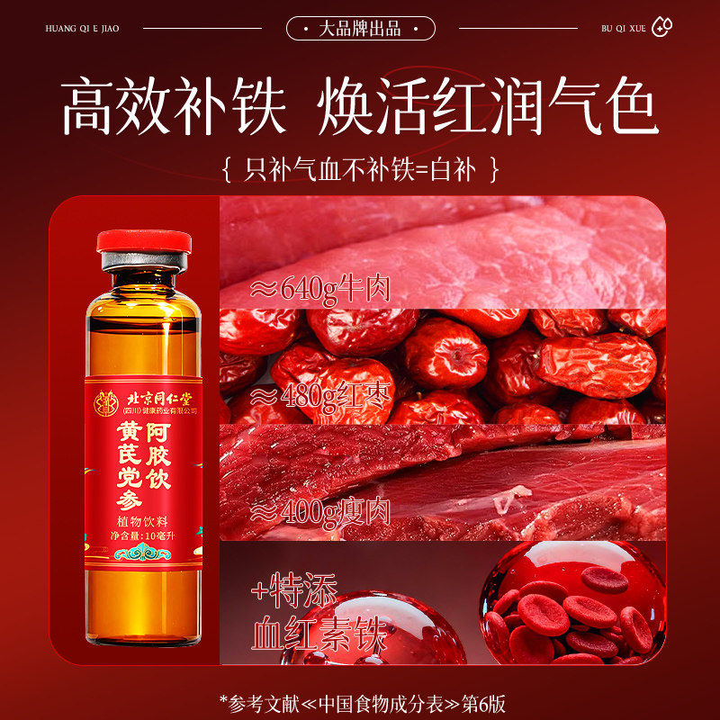北京同仁堂黄芪党参阿胶补气血口服液补气血女阿胶浆贫血免疫调节