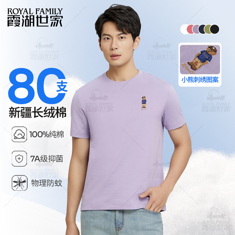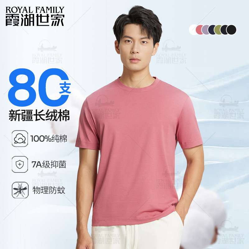 【两件套】霞湖世家纯棉t恤80支新疆长绒棉防蚊刺绣圆领短袖166A