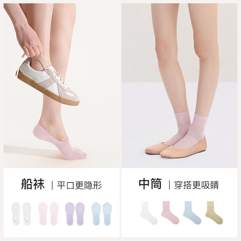 ubras莱赛尔蚕丝船袜7A抗菌透气舒适短袜隐形袜防滑不掉跟袜子女