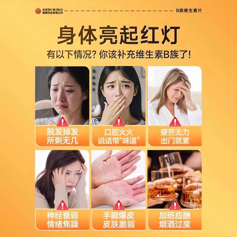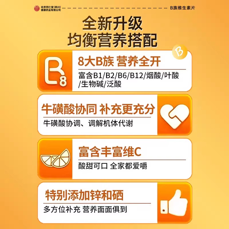 北京同仁堂维生素b12正品100片复合片b族旗舰瓶装烟酰胺多种代谢