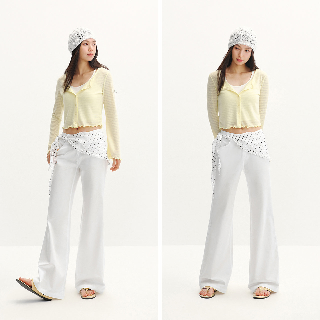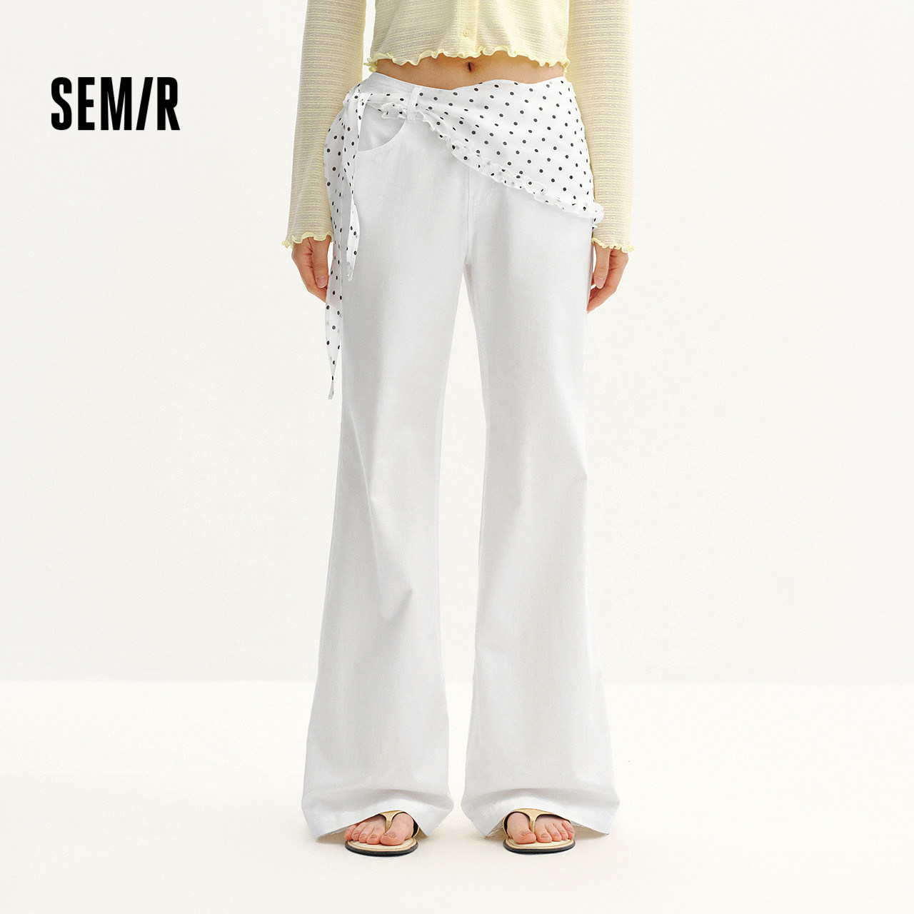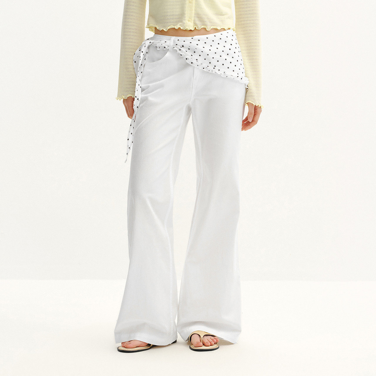 波点三角巾,甜酷氛围 微喇裤修饰小腿线条