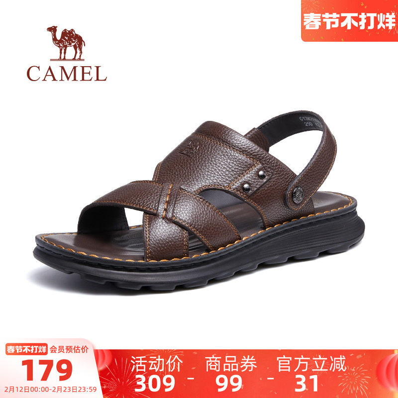 骆驼男鞋凉鞋2025夏季新款真皮商务男士凉拖鞋两穿透气爸爸沙滩鞋