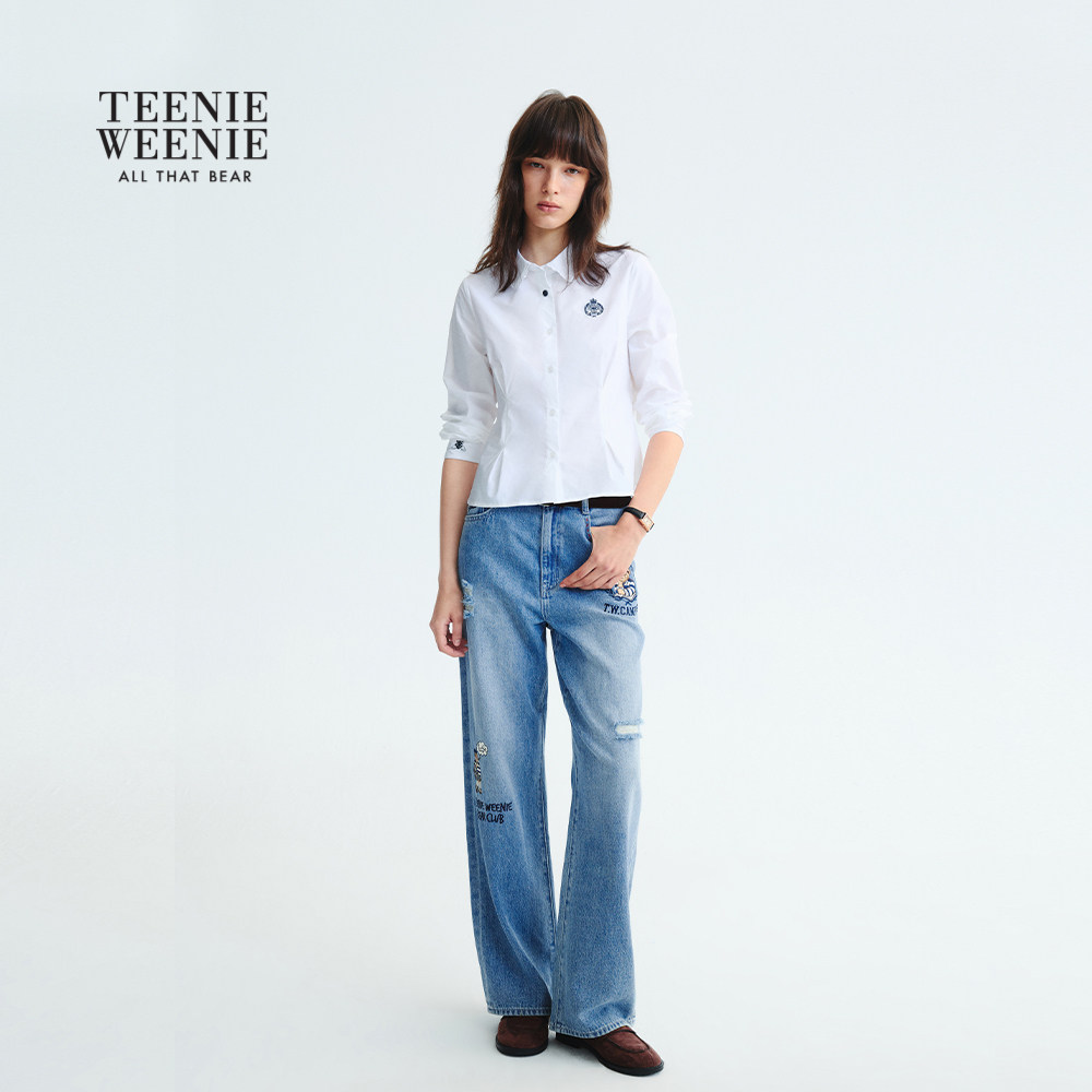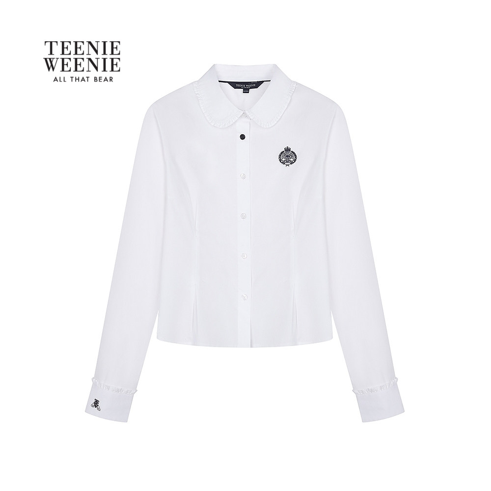 TeenieWeenie小熊女装衬衫2025年秋季新款甜美少女感荷叶边领衬衣