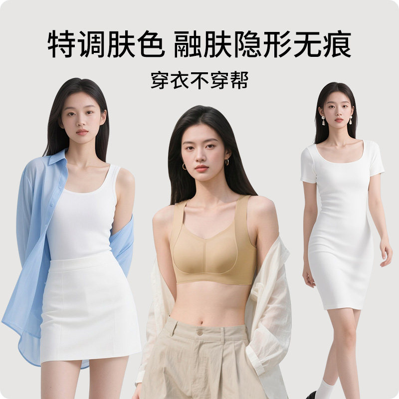 无痕美背抹胸内衣女小胸聚拢可外漏细肩带一体固定杯背心式文胸罩