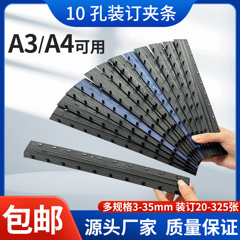 白色装订夹条十孔夹条3mm-35mm塑料夹条十齿文件夹条装订压条包邮