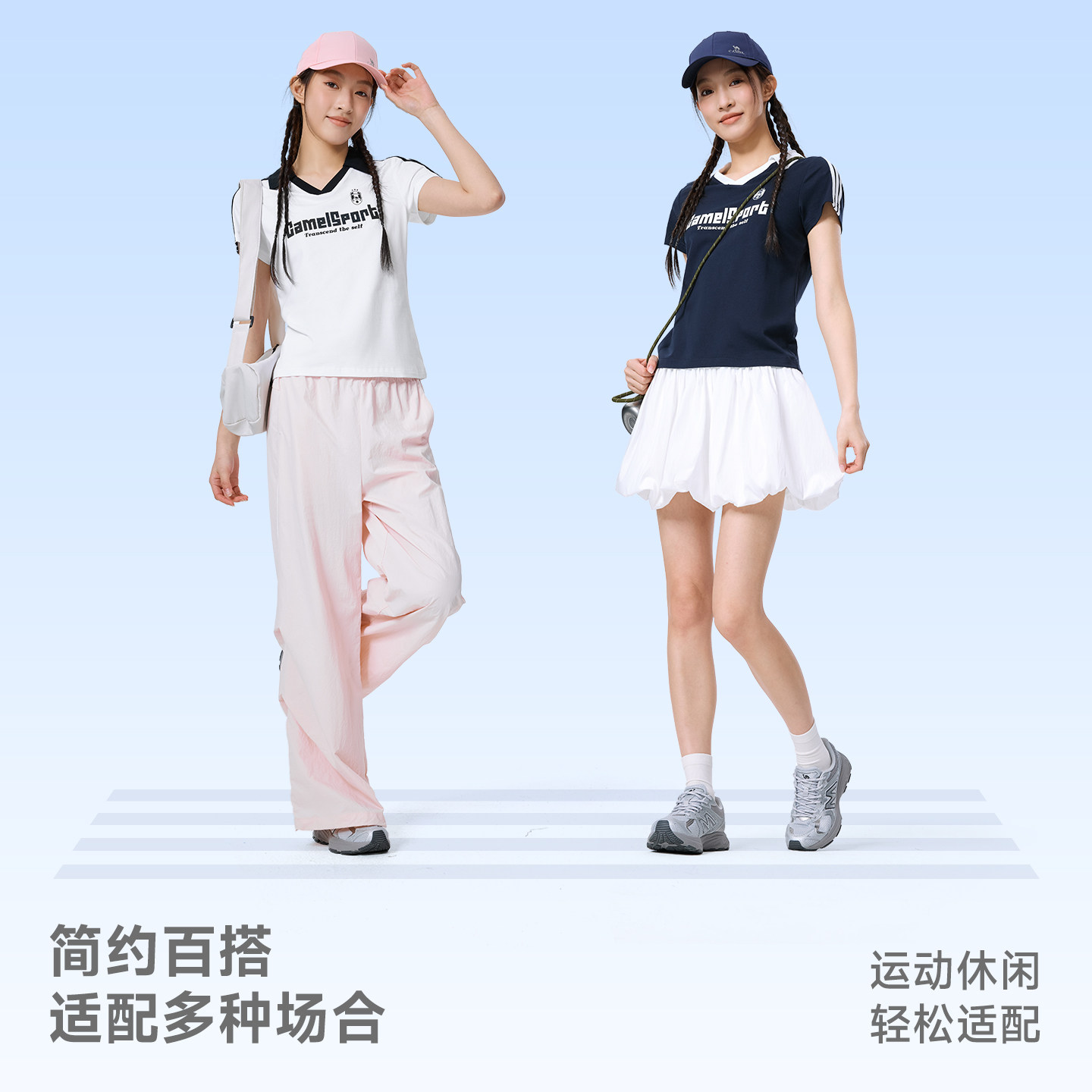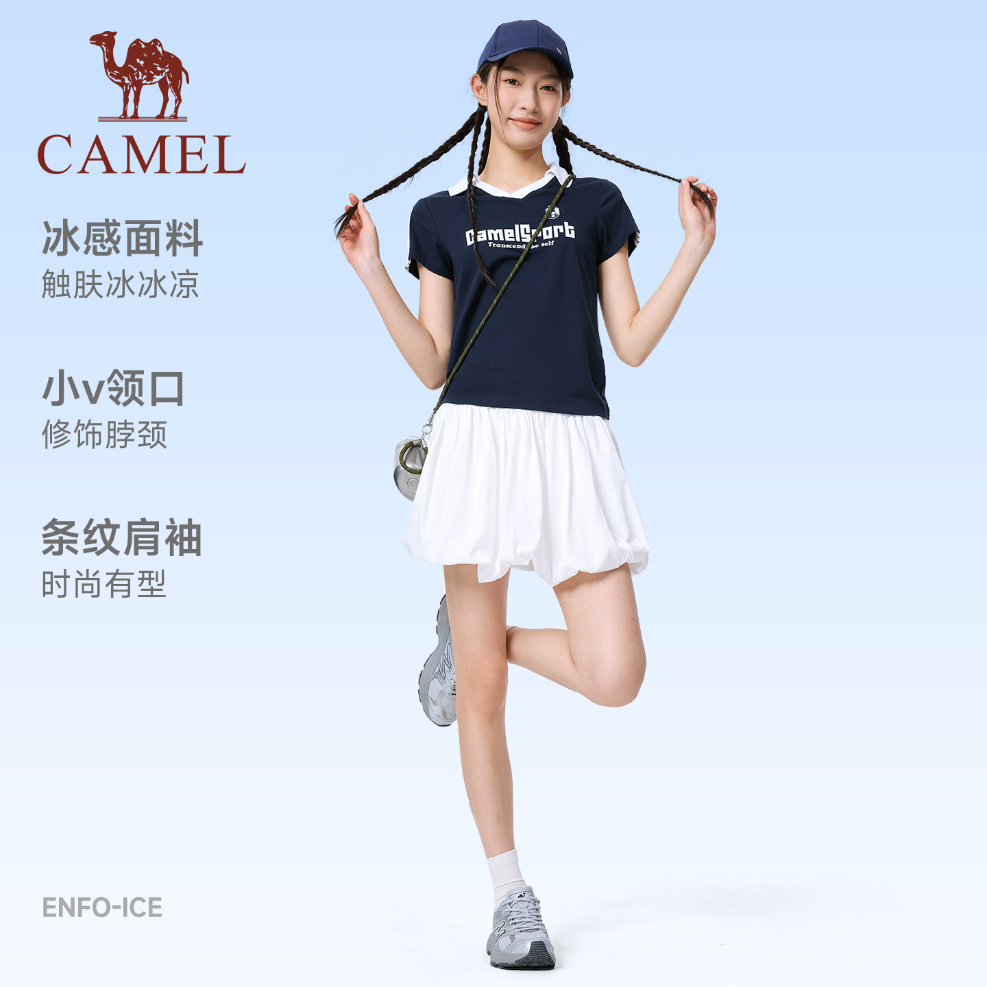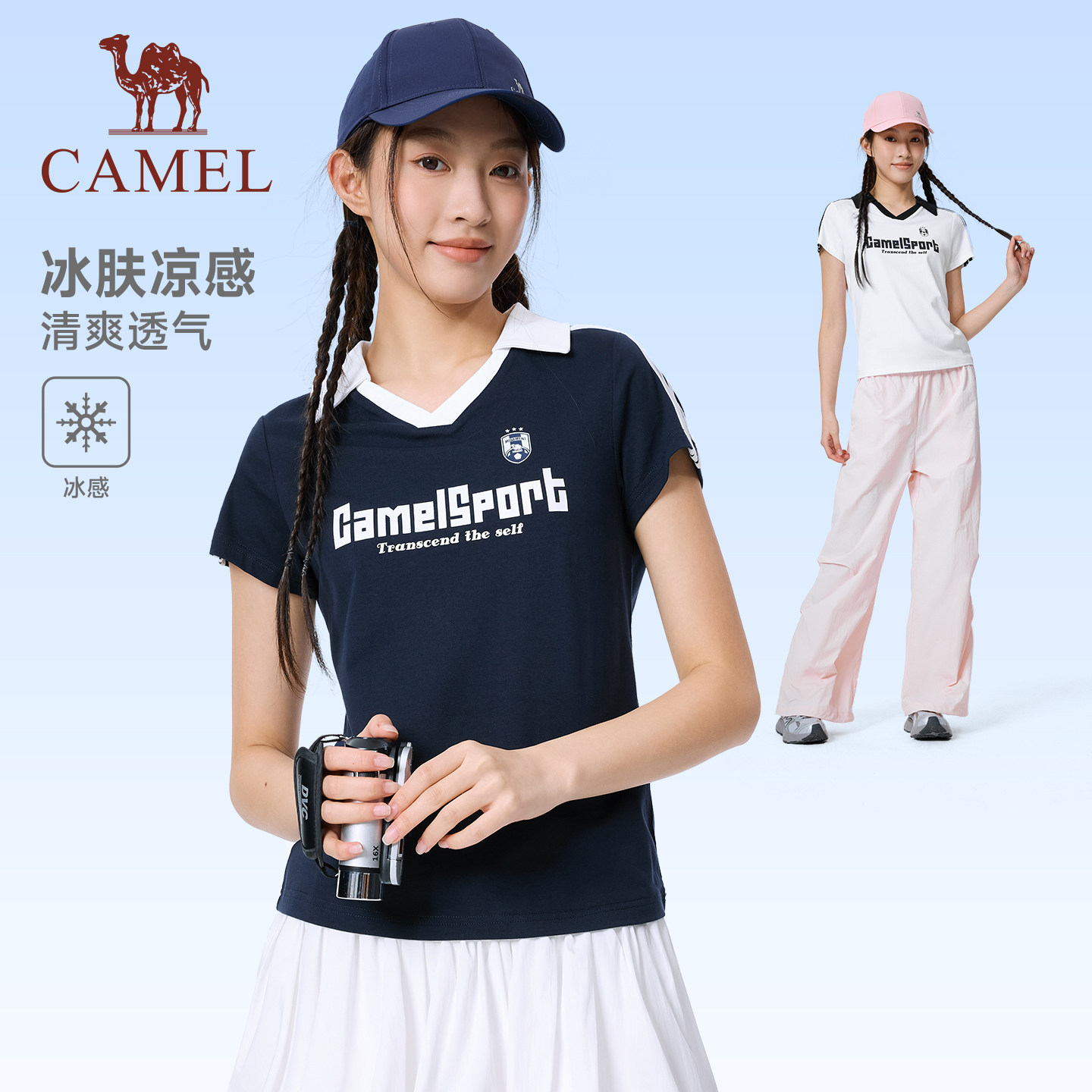 骆驼运动短袖T恤女2026夏季polo小v领冰感美式复古休闲翻领上衣男
