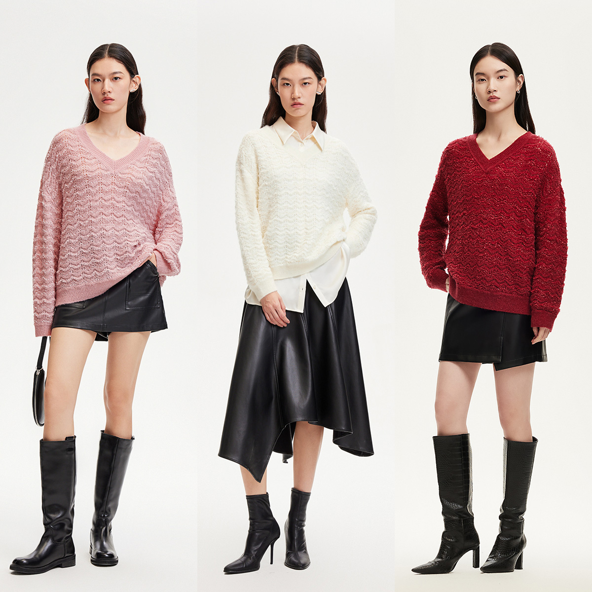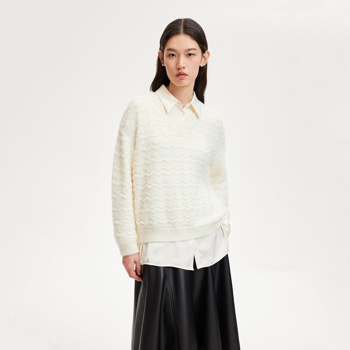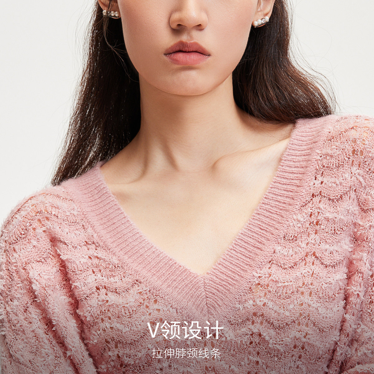 V领设计,拉伸脖颈线条,实现视觉显瘦