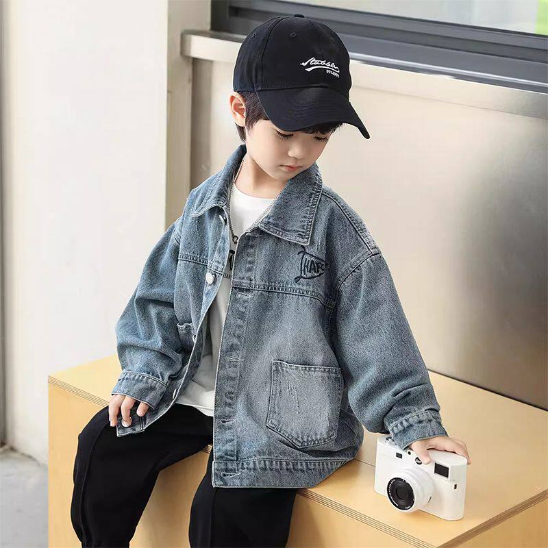 男童春秋季新款水洗牛仔衣中大童时尚潮酷刺绣上衣儿童装百搭外套
