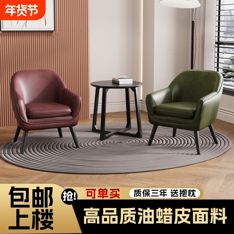 阳台懒人沙发单人小户型休闲椅子办公茶几轻奢皮客厅久坐设计师