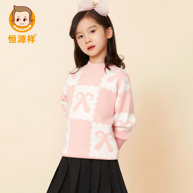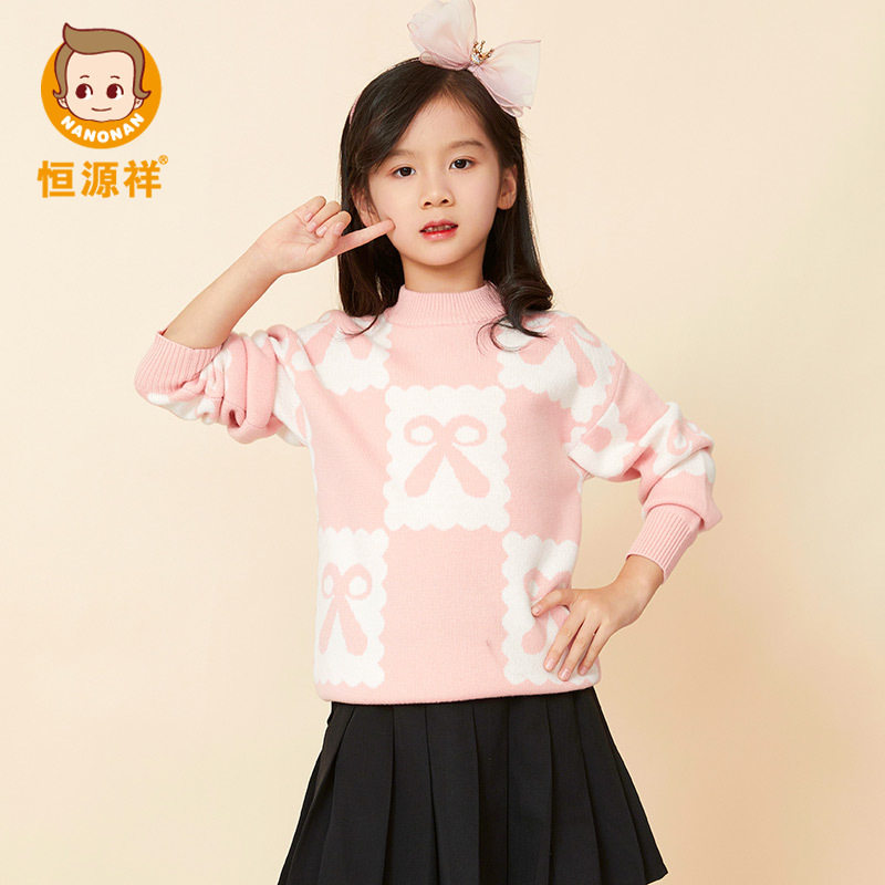 恒源祥100%绵羊毛衫亲子儿童线衣女童收腰针织打底衫纯色毛衣秋冬
