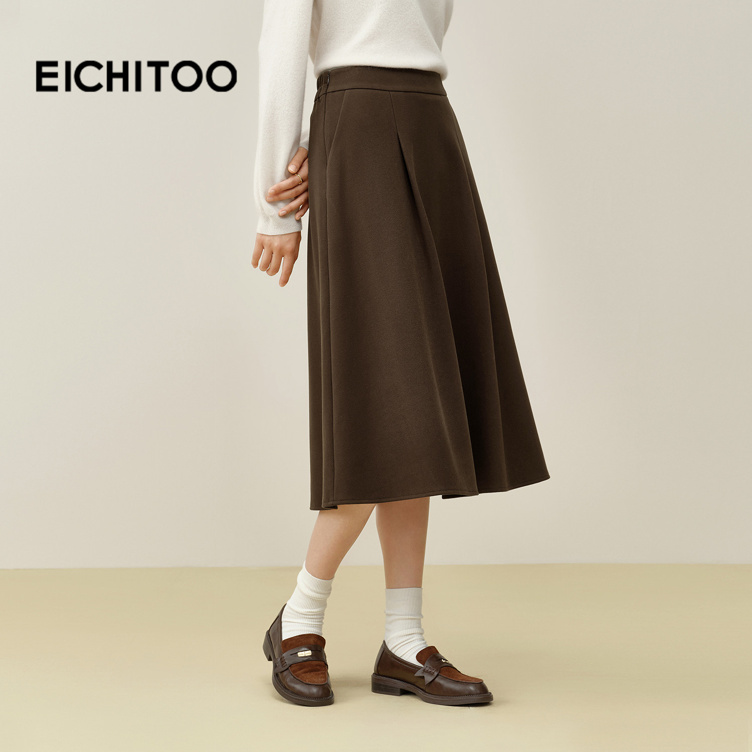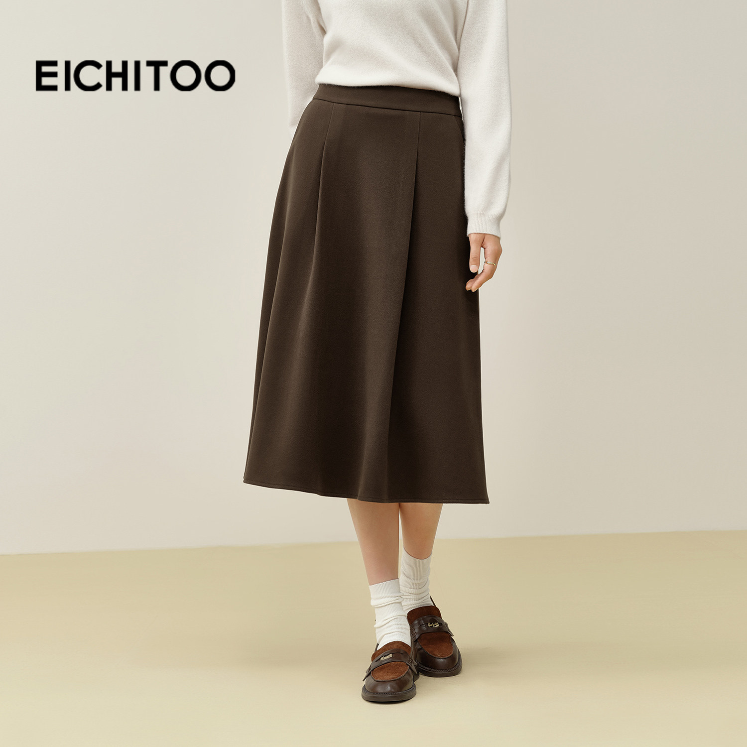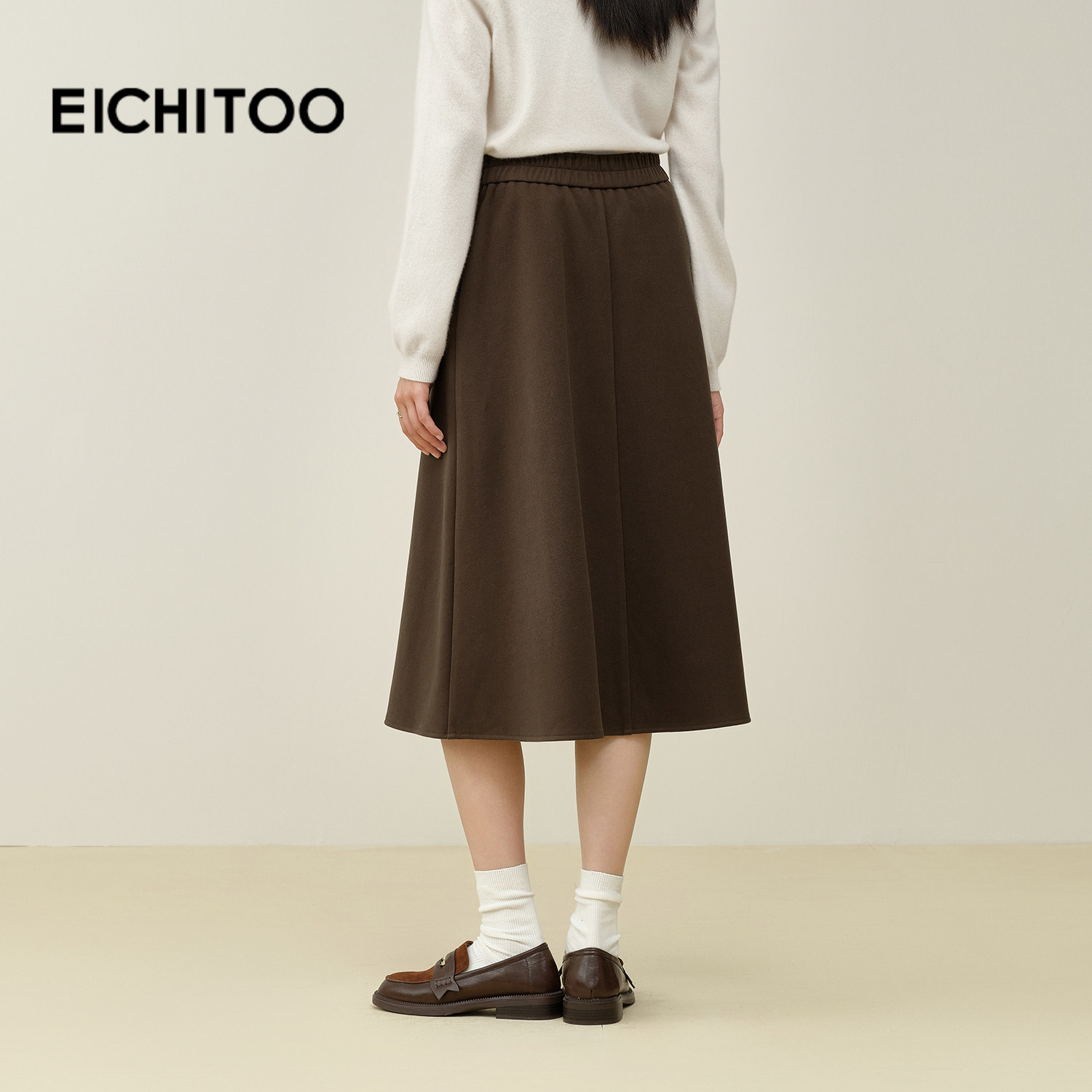 爱居兔基础百搭半身裙2025年冬季新款女垂感舒适知性咖色伞裙长裙